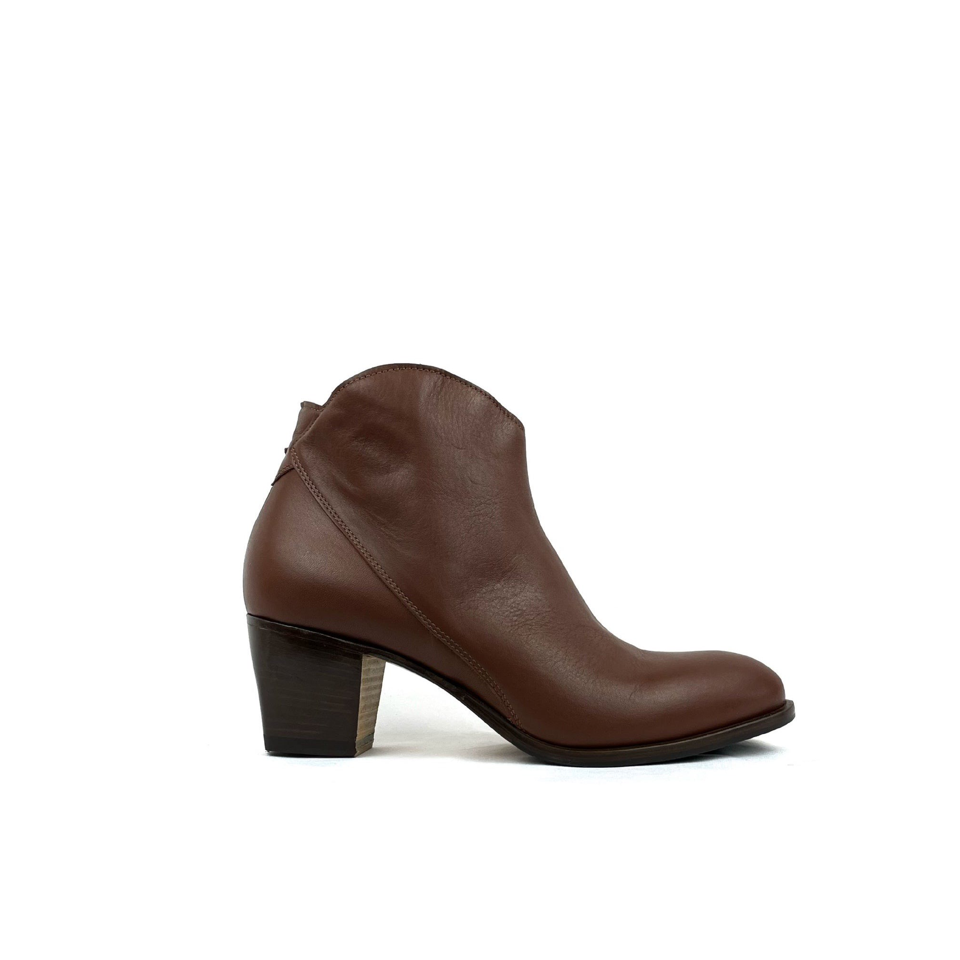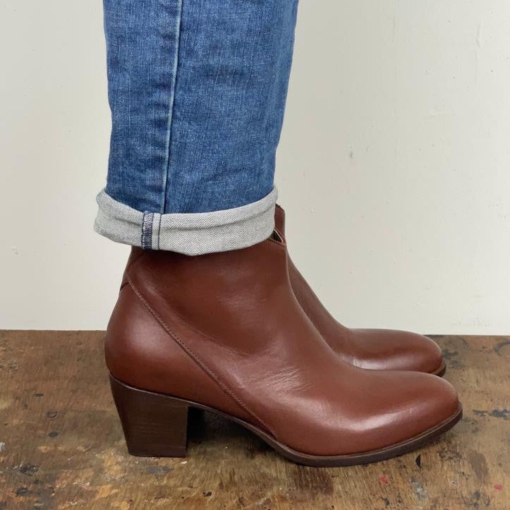 Stivaletto dalla forma affusolata con la vestibilità di un texanino, quindi mobile in caviglia. Una volta indossato la sensazione deve esser quasi di perderlo. Ispirato alla grinta di Anita Garibaldi, con il tacco largo e la soletta in lattice rivestita in pelle offre la libertà di movimento e lo stile che cerchiamo.