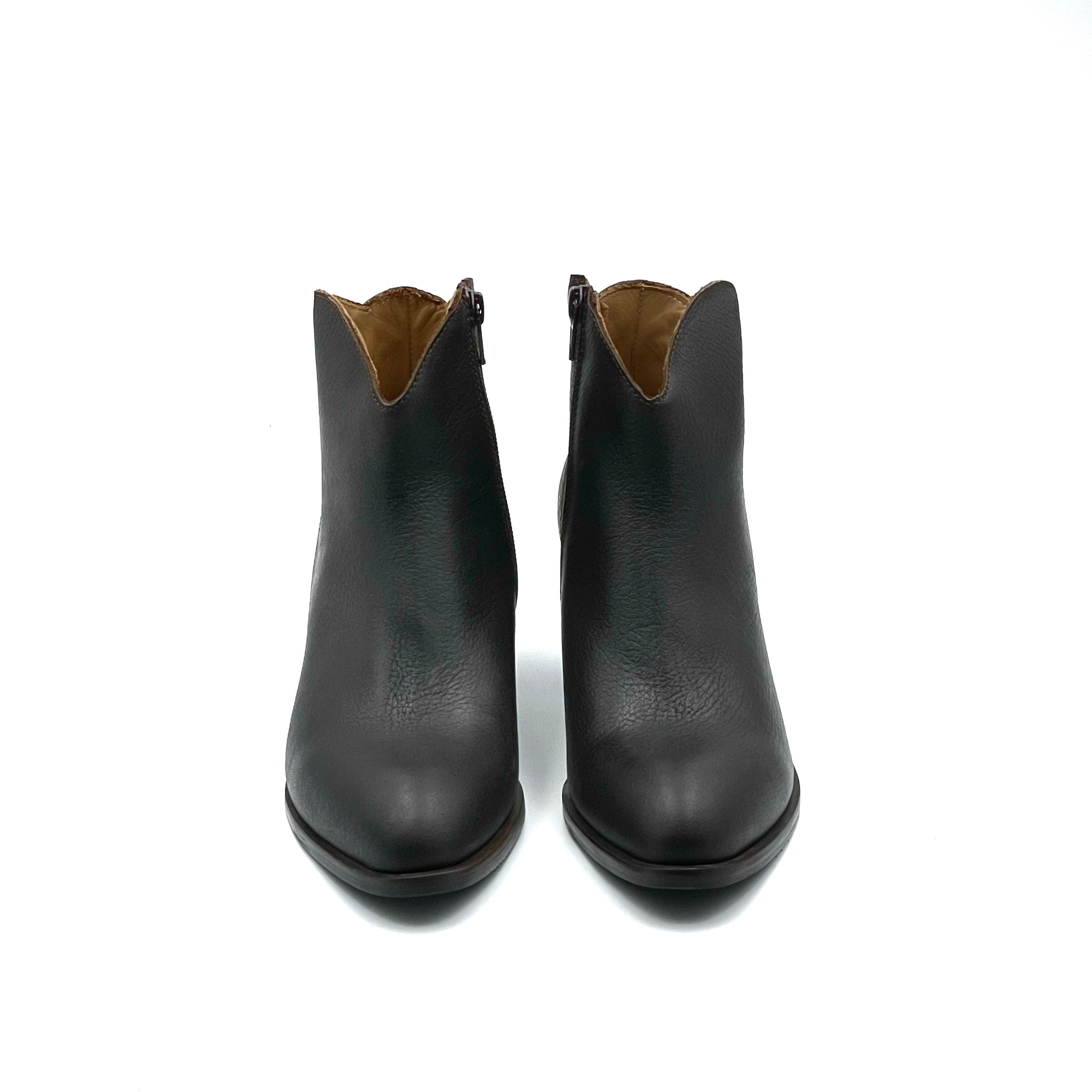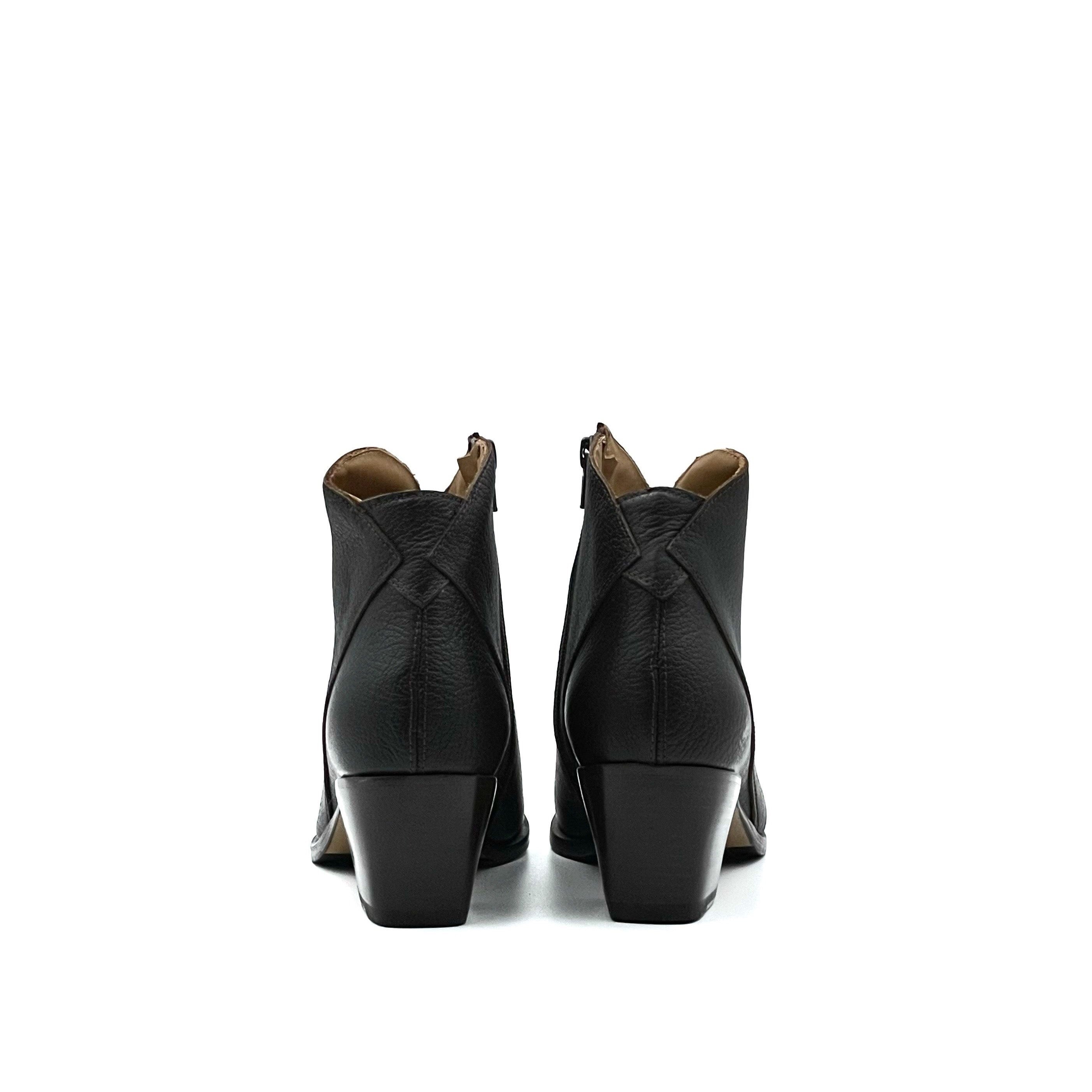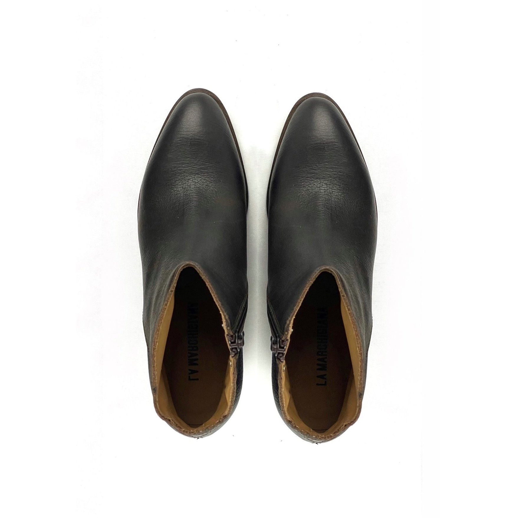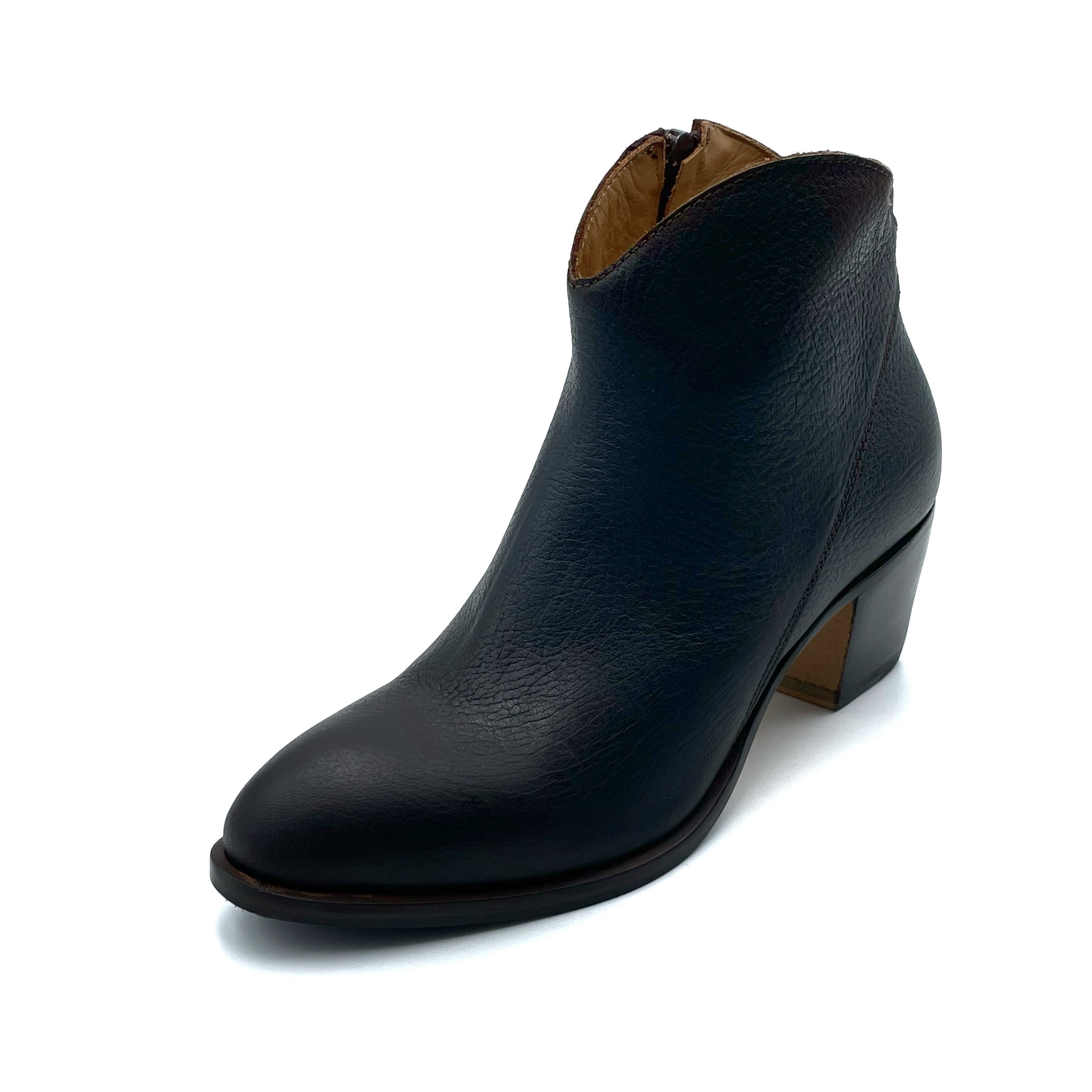Stivaletto dalla forma affusolata con la vestibilità di un texanino, quindi mobile in caviglia. Una volta indossato la sensazione deve esser quasi di perderlo. Ispirato alla grinta di Anita Garibaldi, con il tacco largo e la soletta in lattice rivestita in pelle offre la libertà di movimento e lo stile che cerchiamo.
