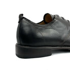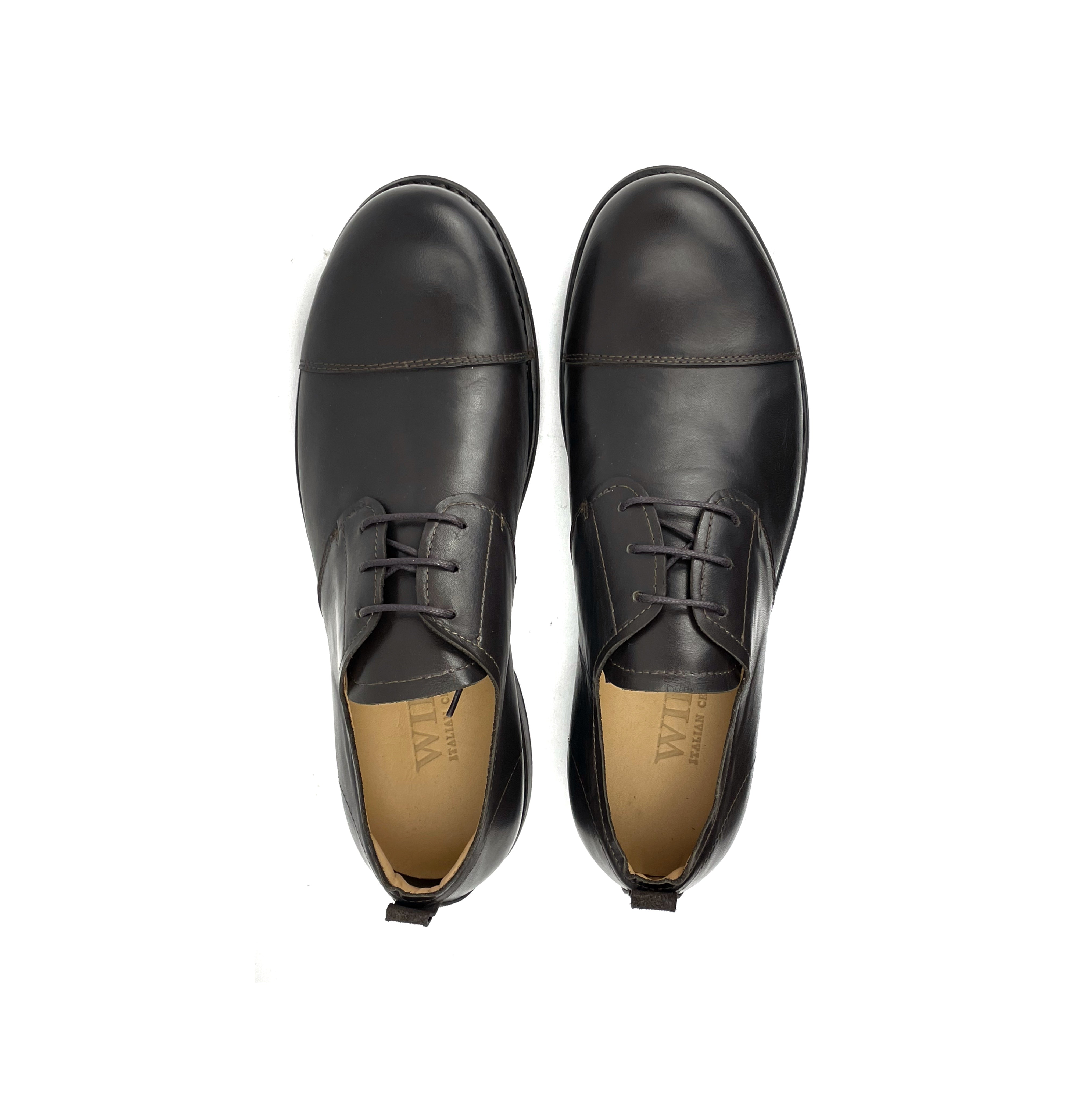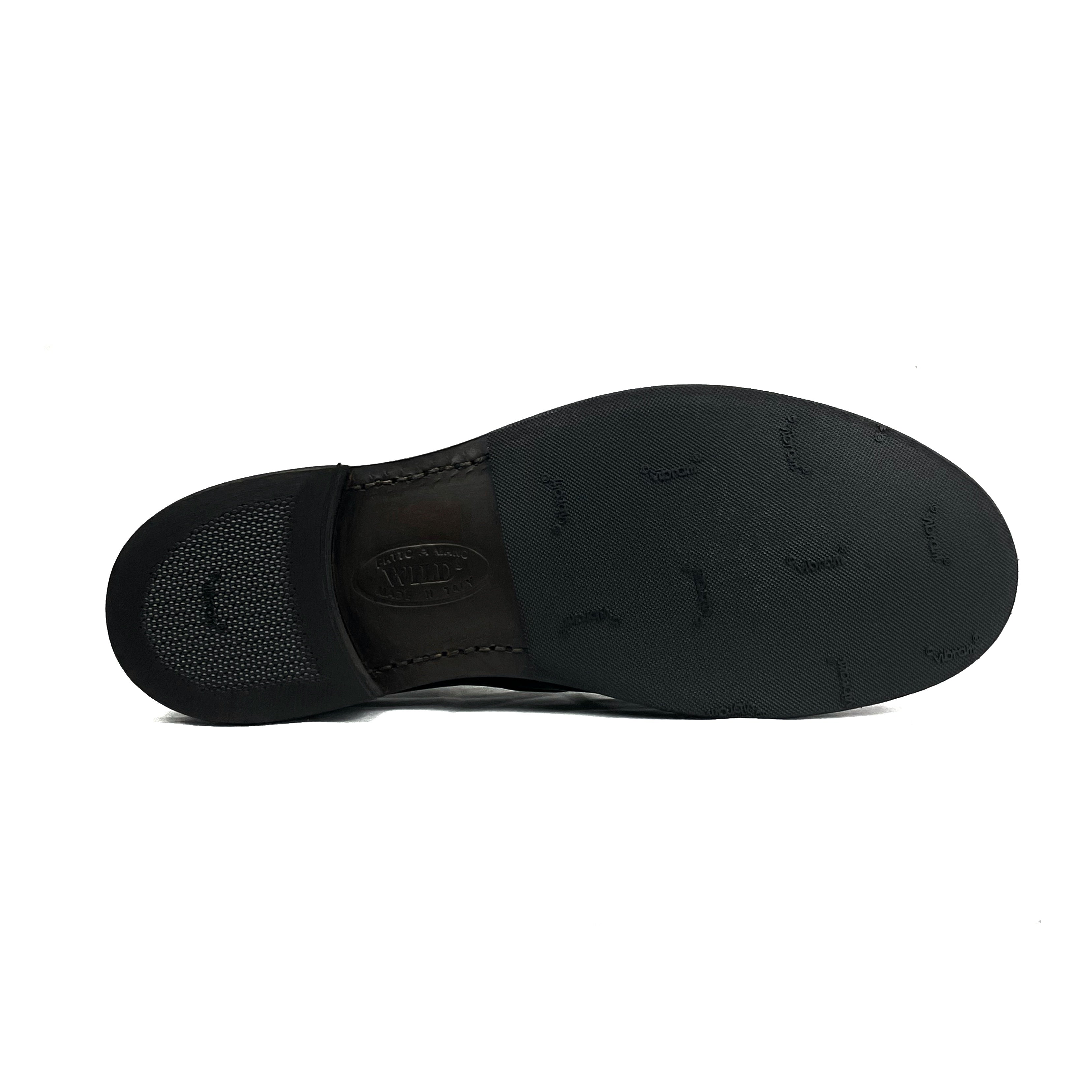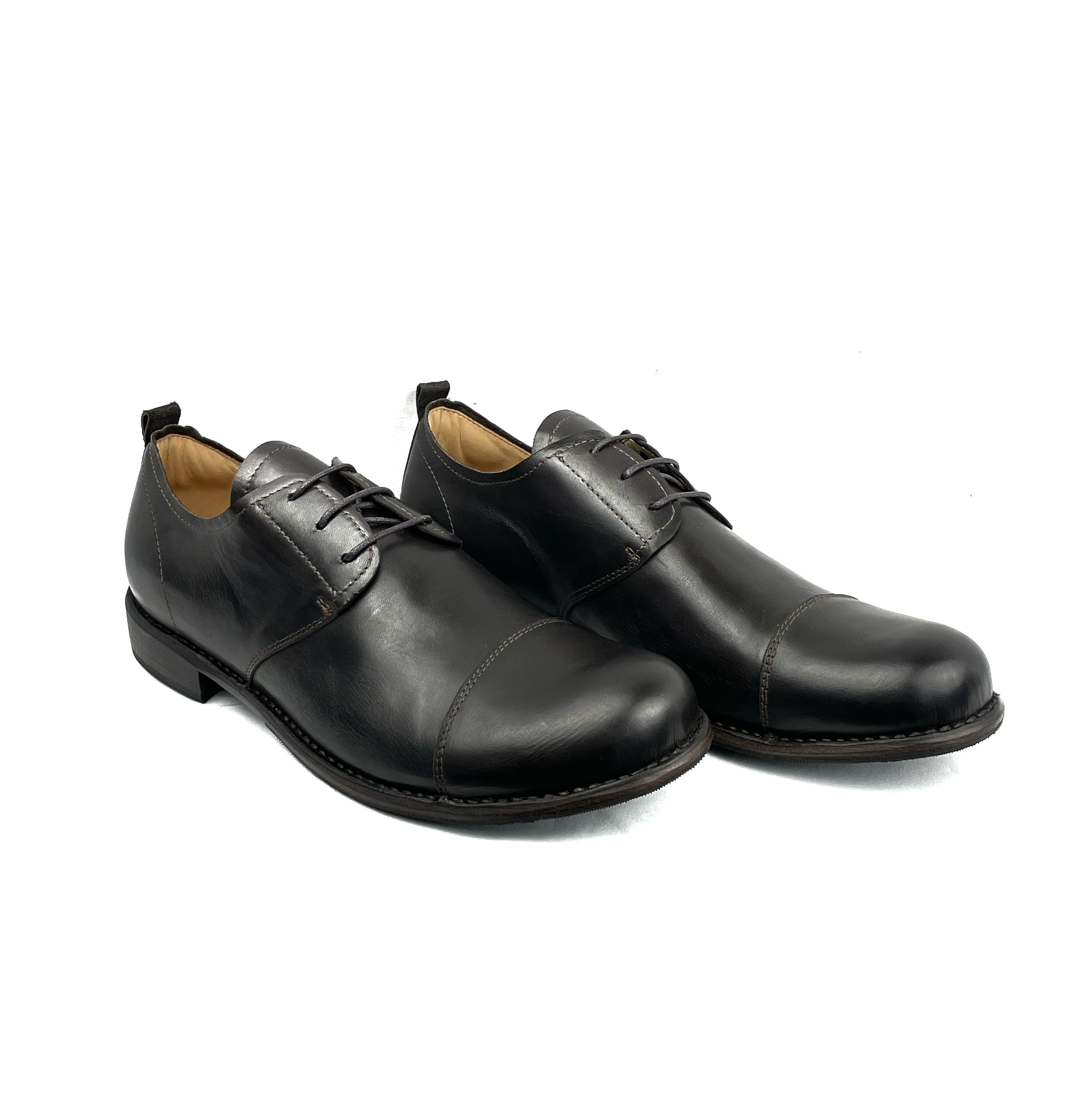 Forma dalla pianta larga e con la punta leggermente all'insù. Tomaia e fodera in pelle di vitello. Suola in cuoio cucita alla tomaia, con antiscivolo in gomma. Una volta indossata, la punta deve rimanere vuota. Tra la fine del dito e la fine della scarpa deve esserci uno spazio di 2 cm