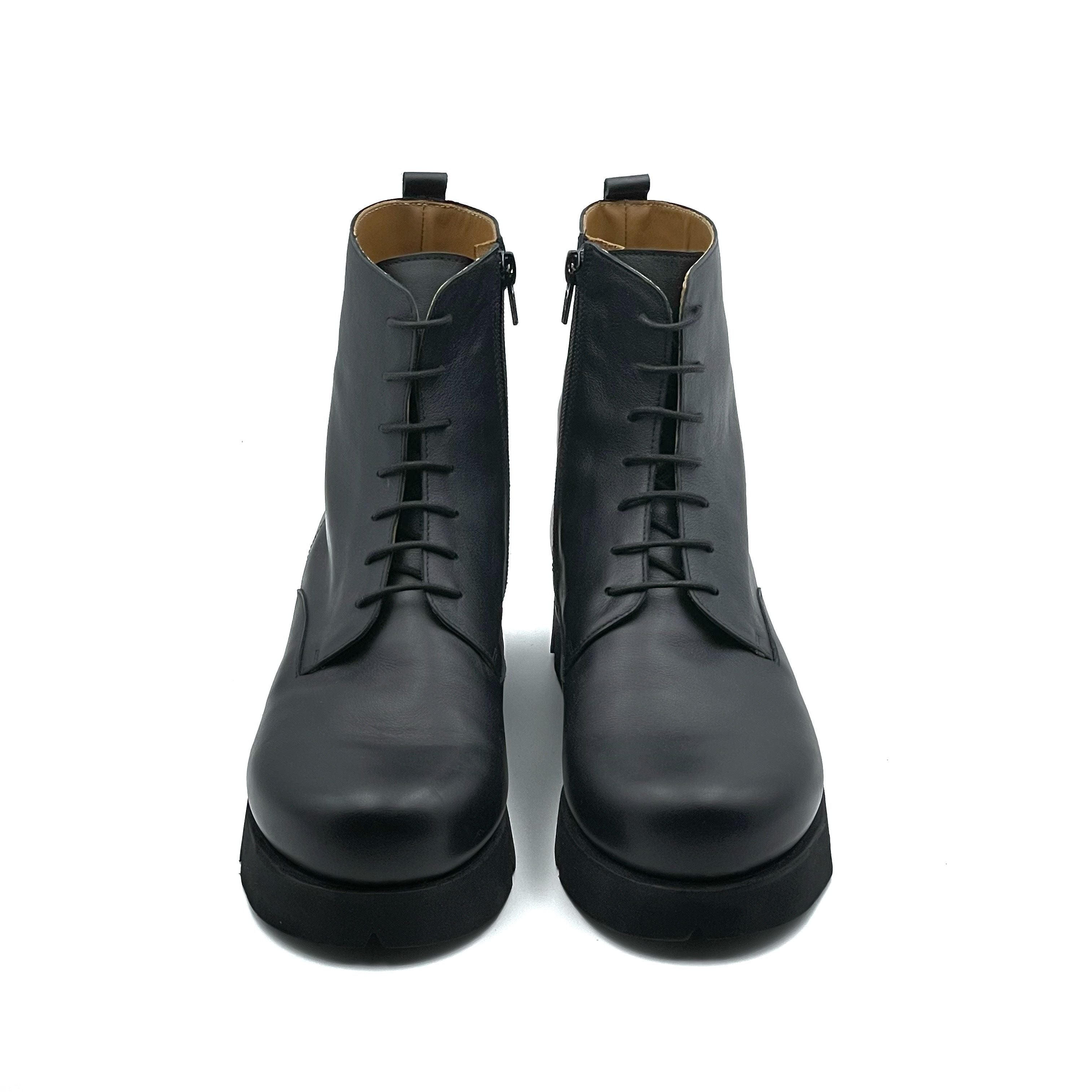 Anfibio comodo, dalla forma rotonda e accogliente. All’interno è previsto un plantare anatomico in lattice (alto 1 cm sul tallone) ricoperto in pelle che, oltre a offrire comfort e scarico del peso corporeo su un materiale soffice, può essere sostituito con un plantare ortopedico personale. Grazie ai lacci puoi calibrare la calzata - a seconda del collo del piede e della caviglia. La suola è alta 35 mm sul tallone e 25 in pianta