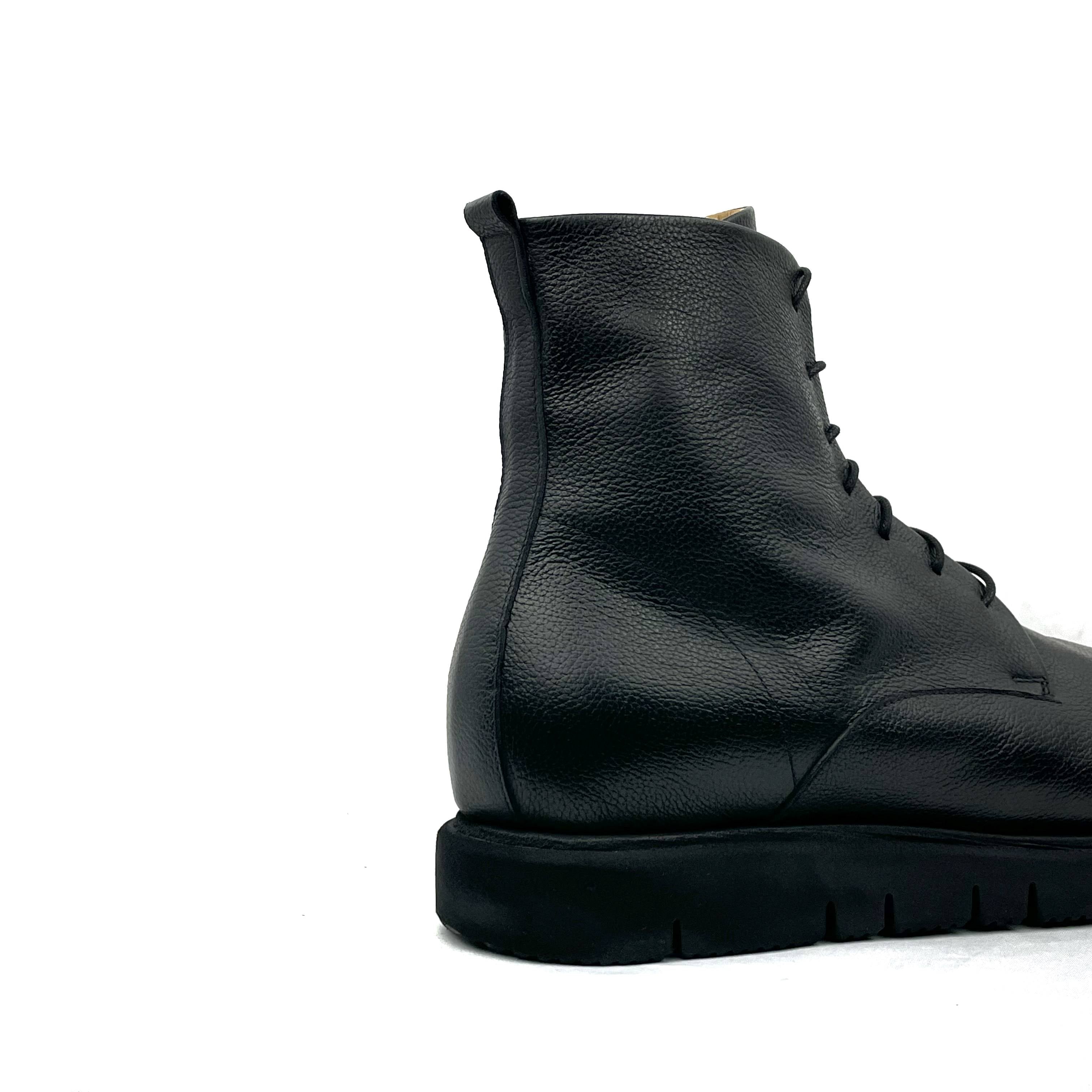 (EN) Comfortable ankle boot with a rounded and cosy shape. It has an anatomical latex footbed on the inside (1 cm high on the heel) covered in leather, which not only offers comfort and relief for the body weight, but can also be replaced with a personal orthopaedic footbed. You can adjust the fit - depending on your instep and ankle measures - by simply regulating the laces, and thanks to the zip you can speed up the opening and closing procedures. The Vibram rubber sole is 3 cm high on the heel and 2 cm high on the sole.