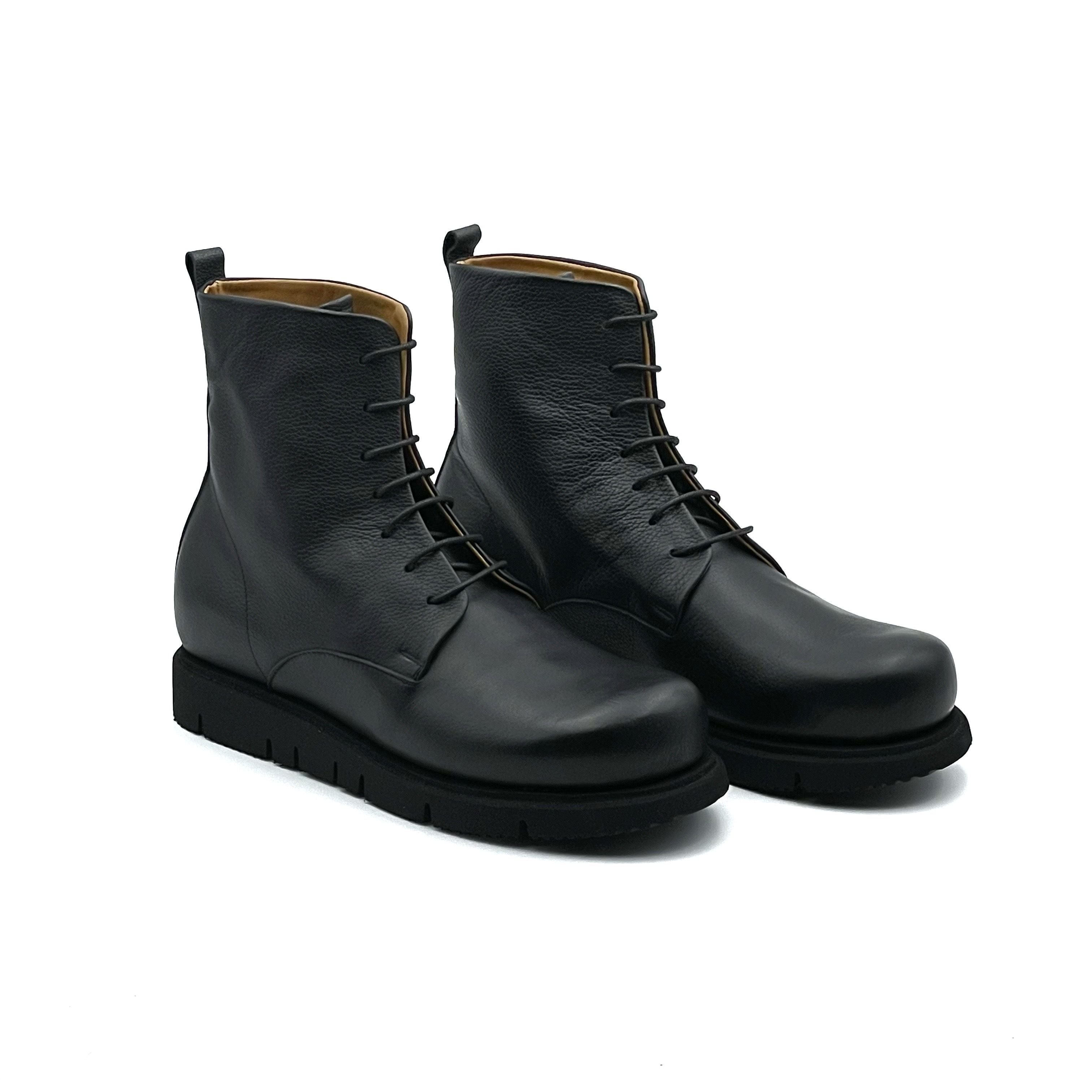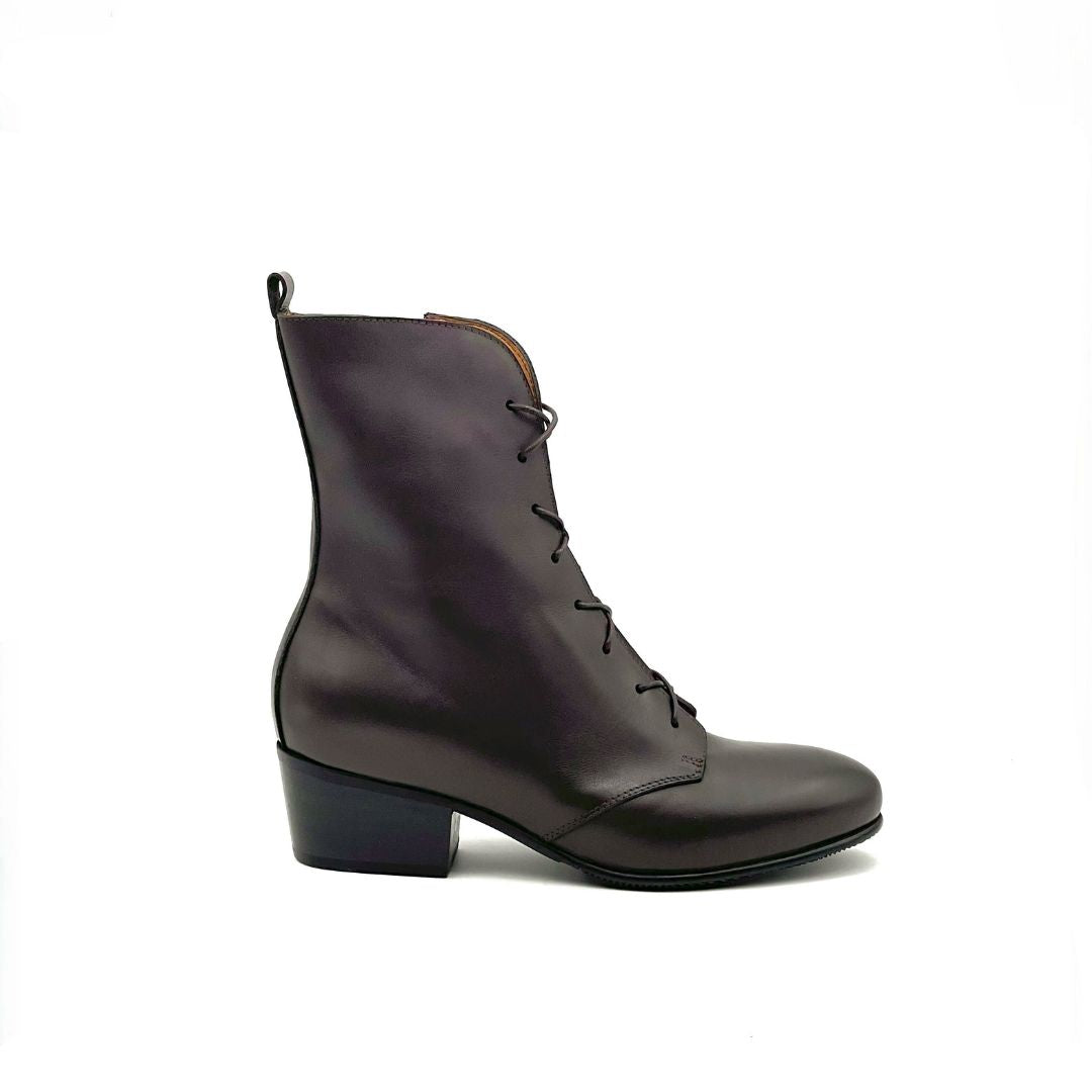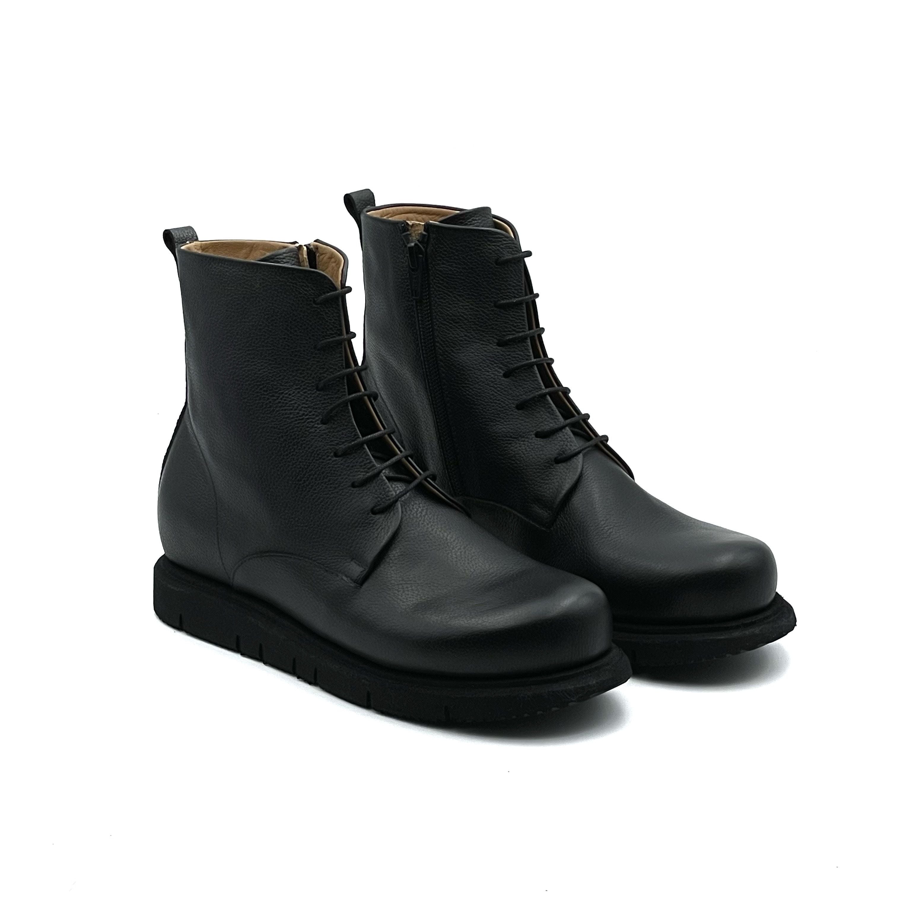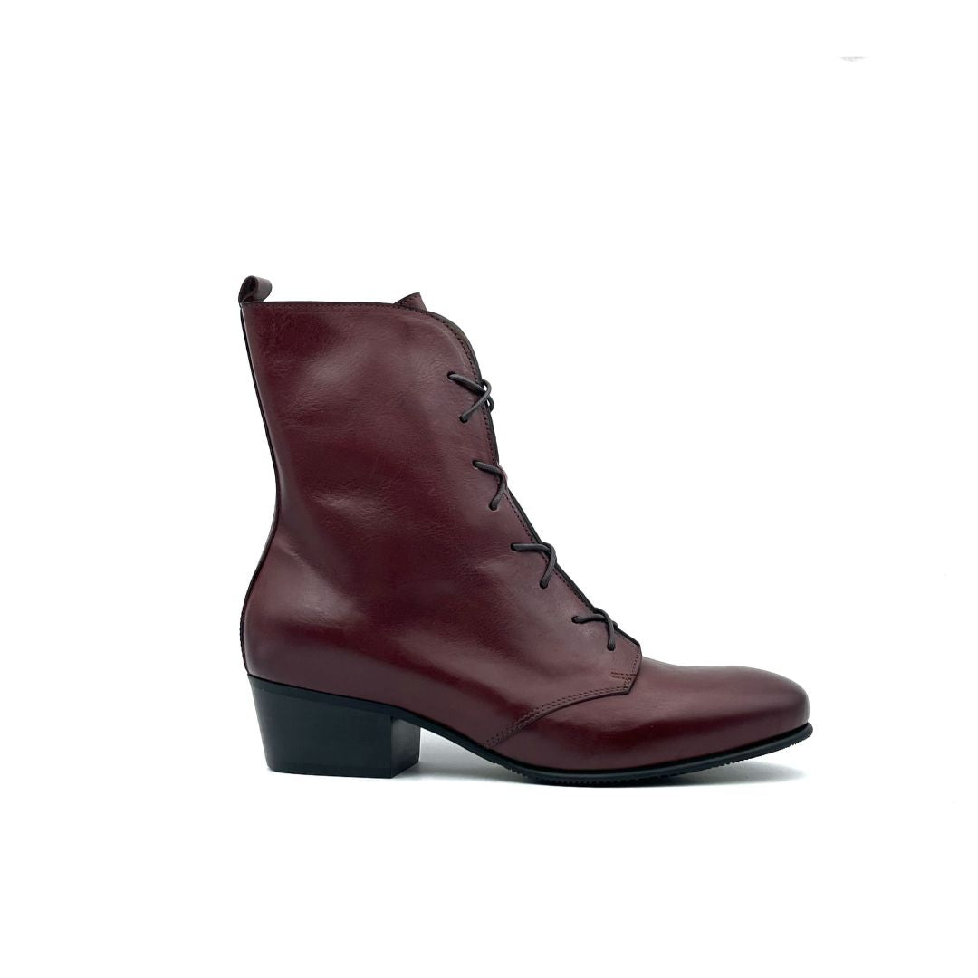 (EN) Comfortable ankle boot with a rounded and cosy shape. It has an anatomical latex footbed on the inside (1 cm high on the heel) covered in leather, which not only offers comfort and relief for the body weight, but can also be replaced with a personal orthopaedic footbed. You can adjust the fit - depending on your instep and ankle measures - by simply regulating the laces. The Vibram rubber sole is 3 cm high on the heel and 2 cm high on the sole.