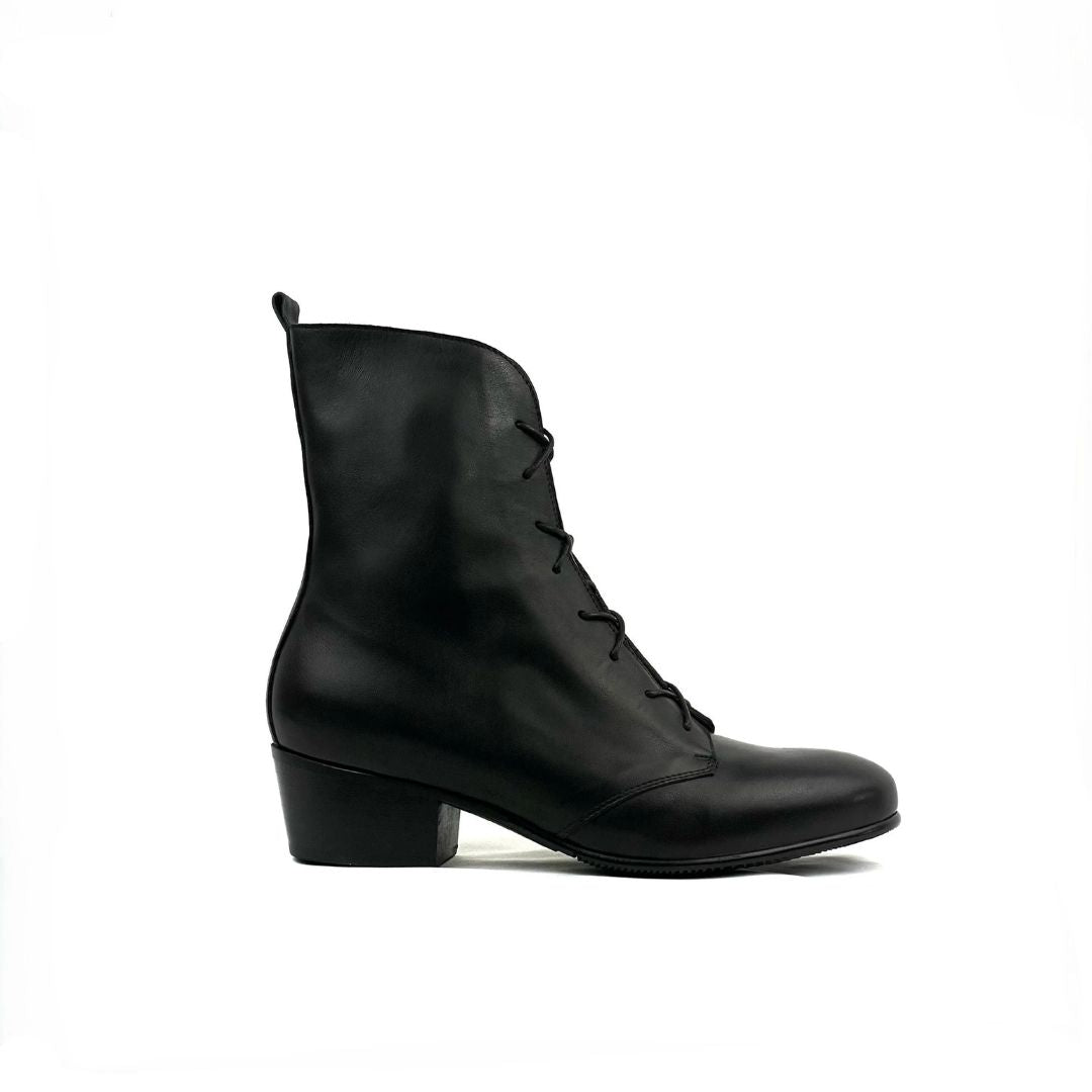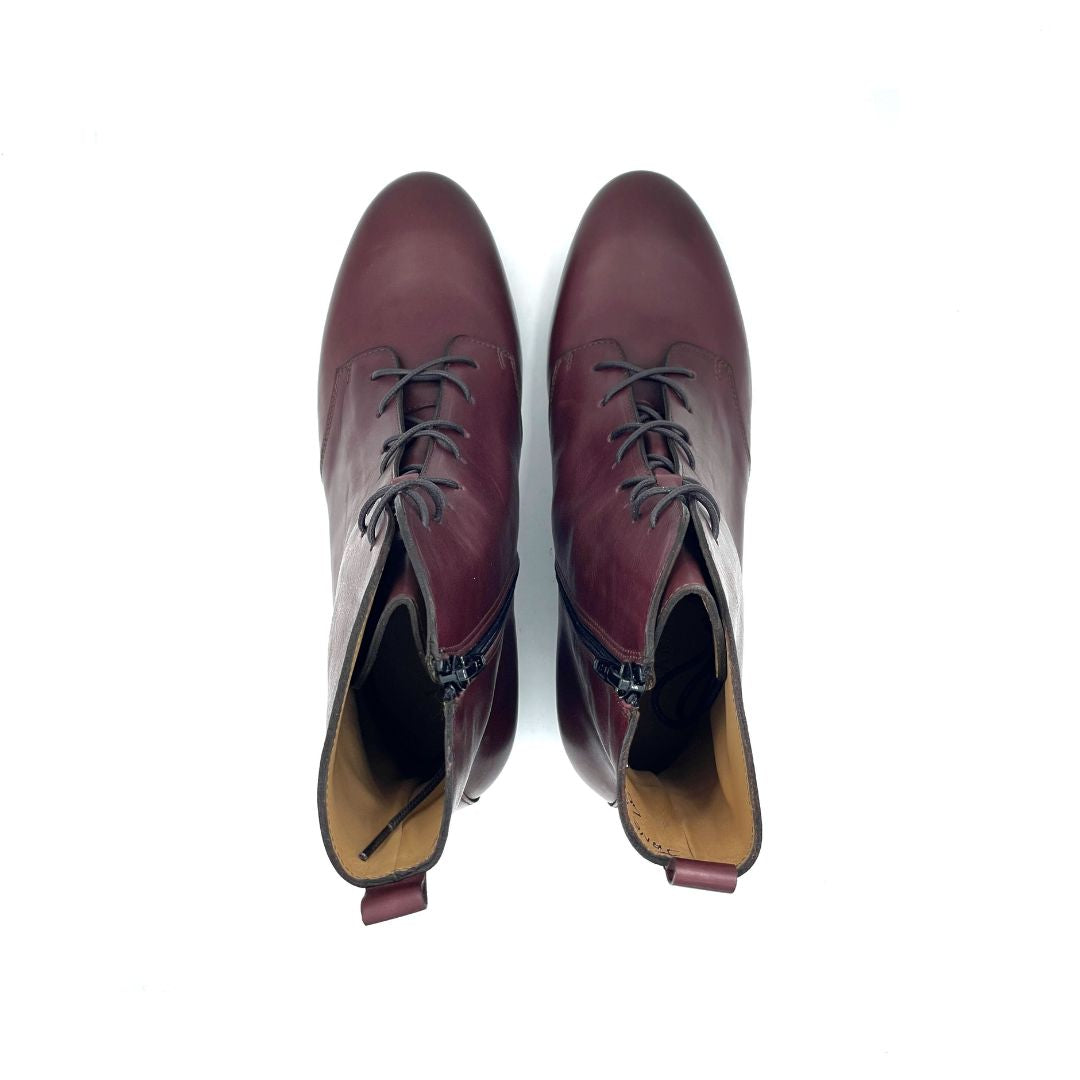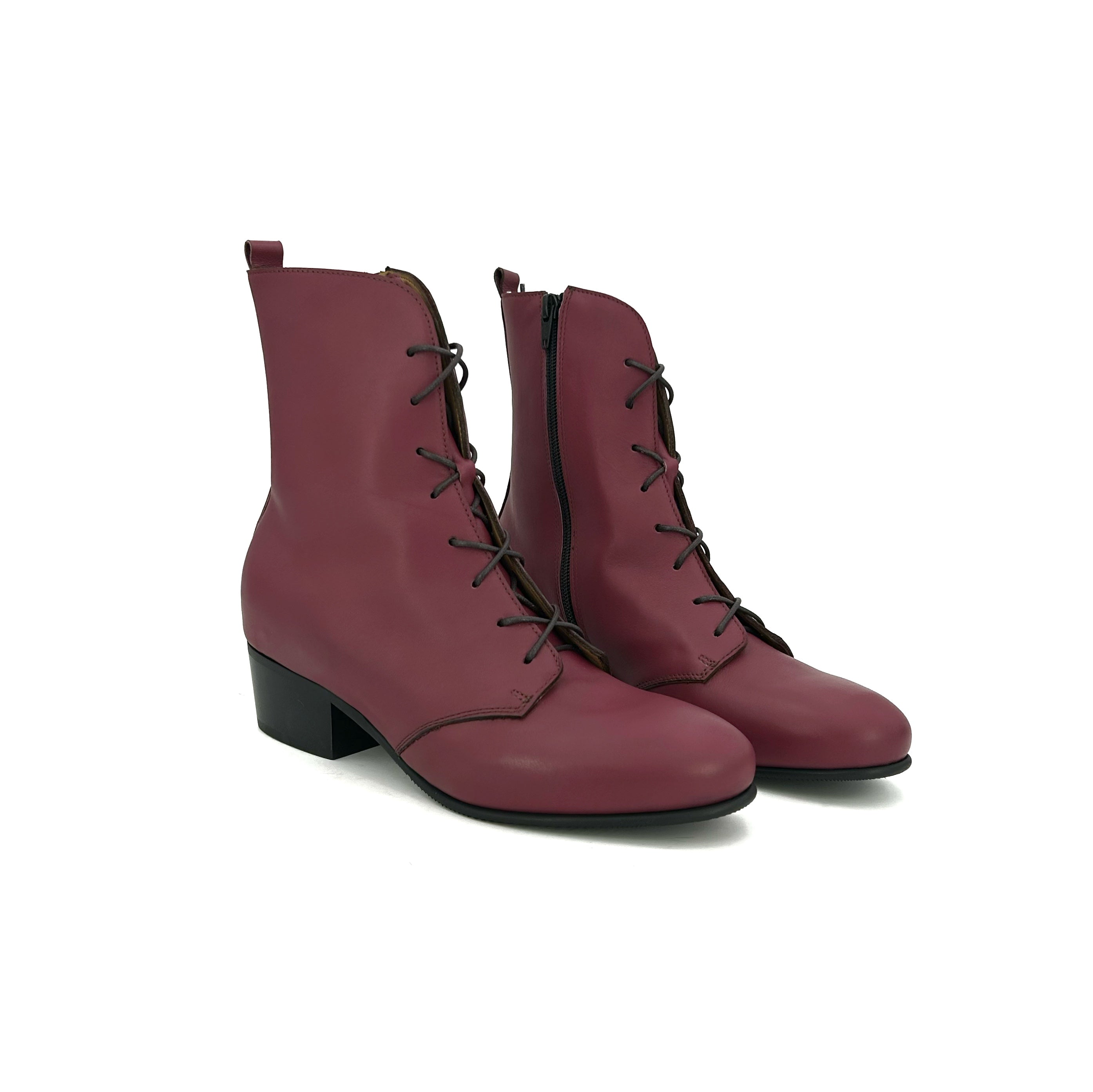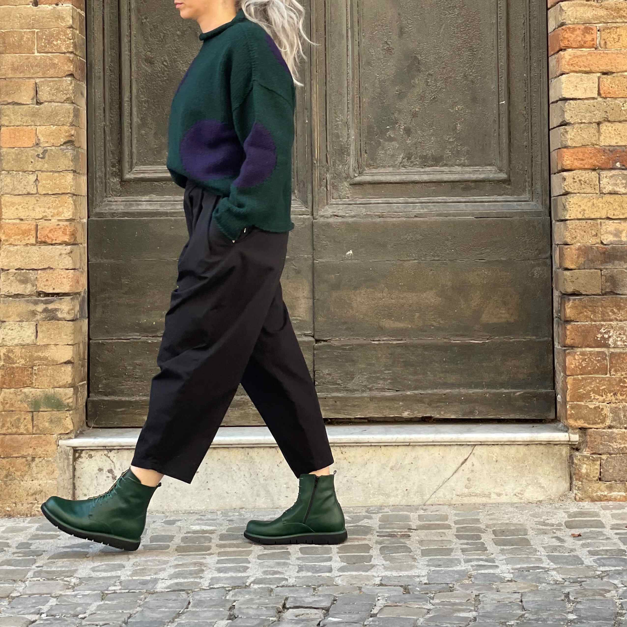 (EN) Comfortable ankle boot with a rounded and cosy shape. It has an anatomical latex footbed on the inside (1 cm high on the heel) covered in leather, which not only offers comfort and relief for the body weight, but can also be replaced with a personal orthopaedic footbed. You can adjust the fit - depending on your instep and ankle measures - by simply regulating the laces. The Vibram rubber sole is 3 cm high on the heel and 2 cm high on the sole.