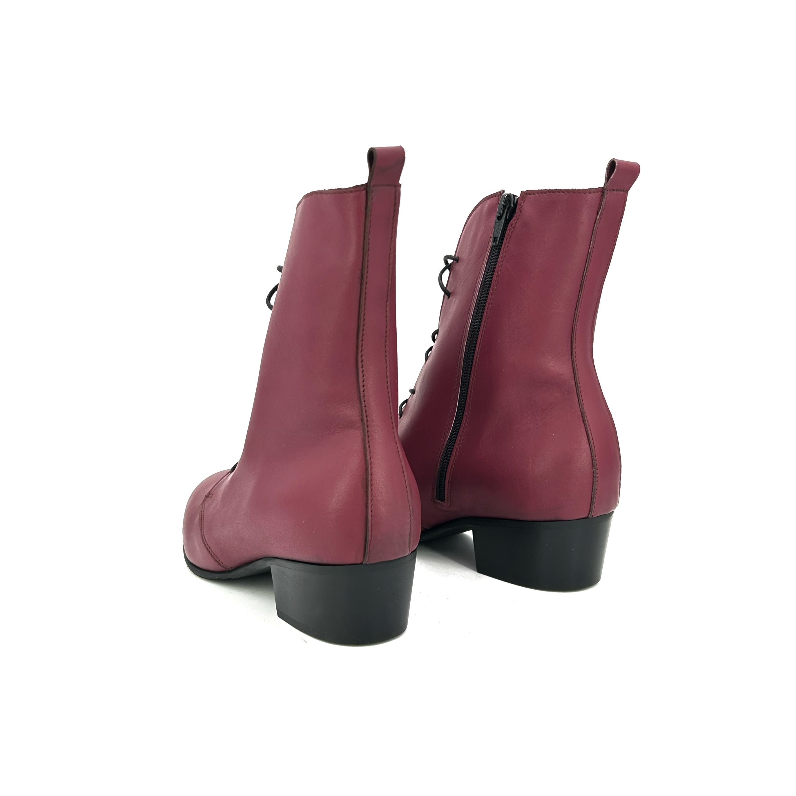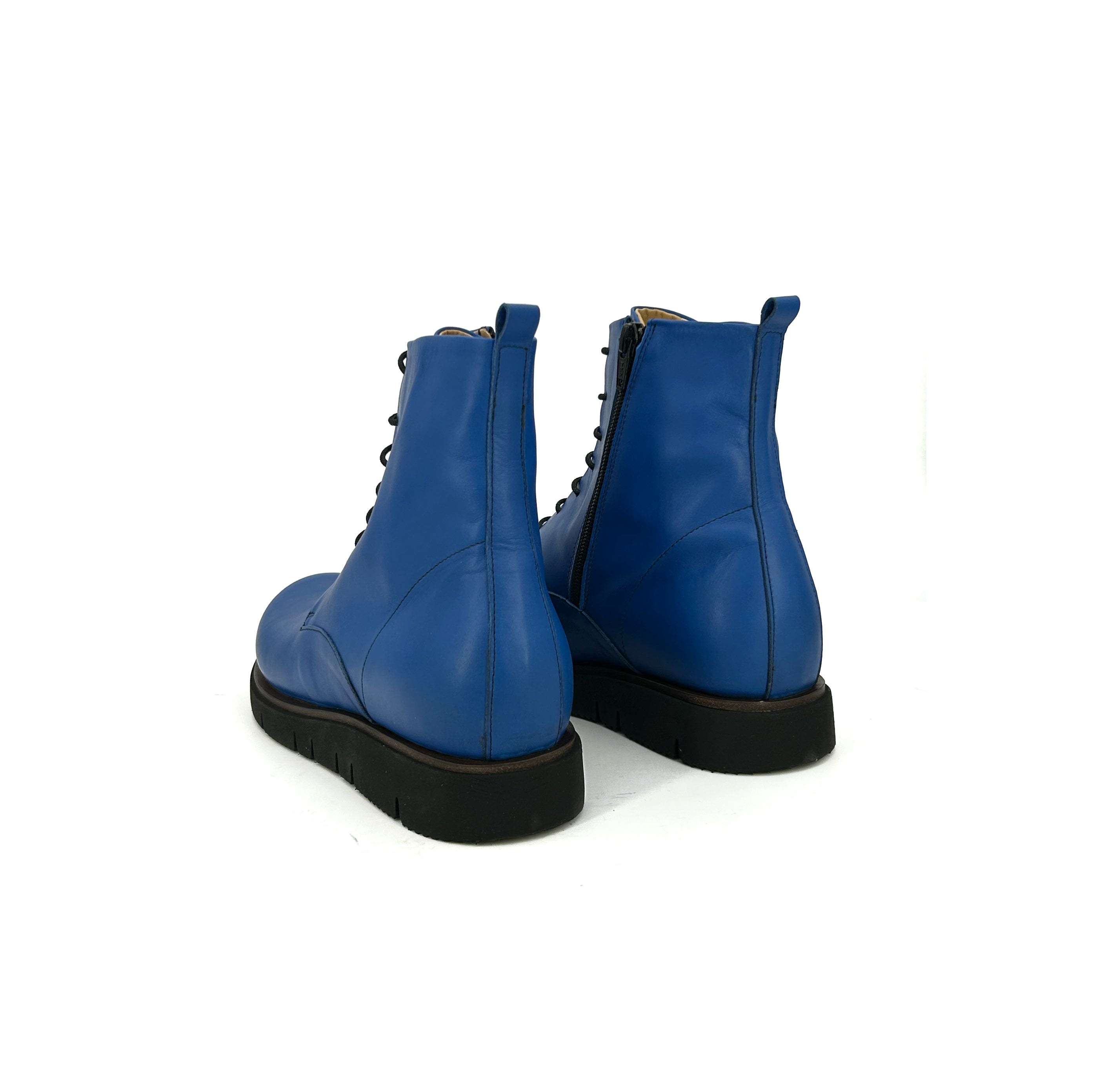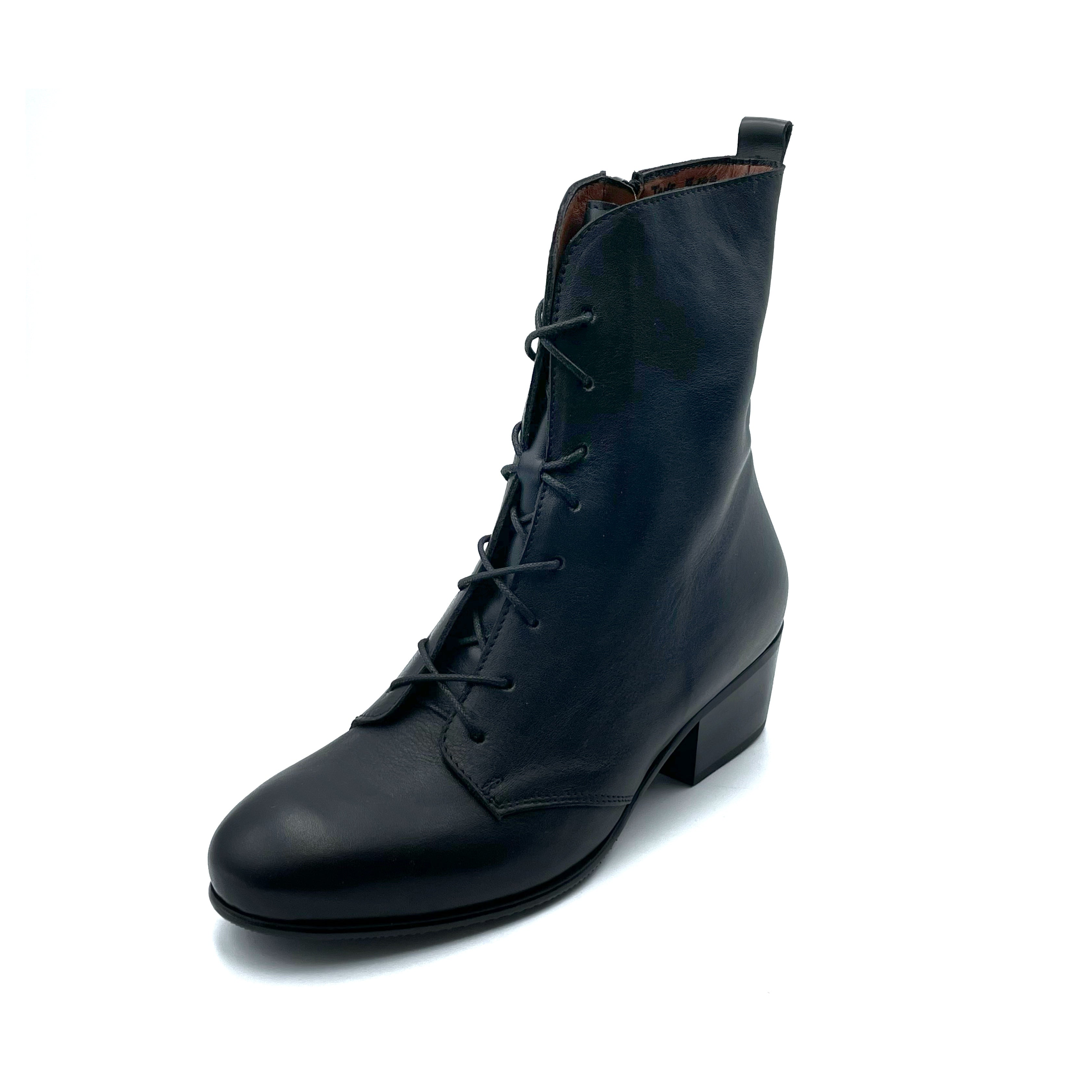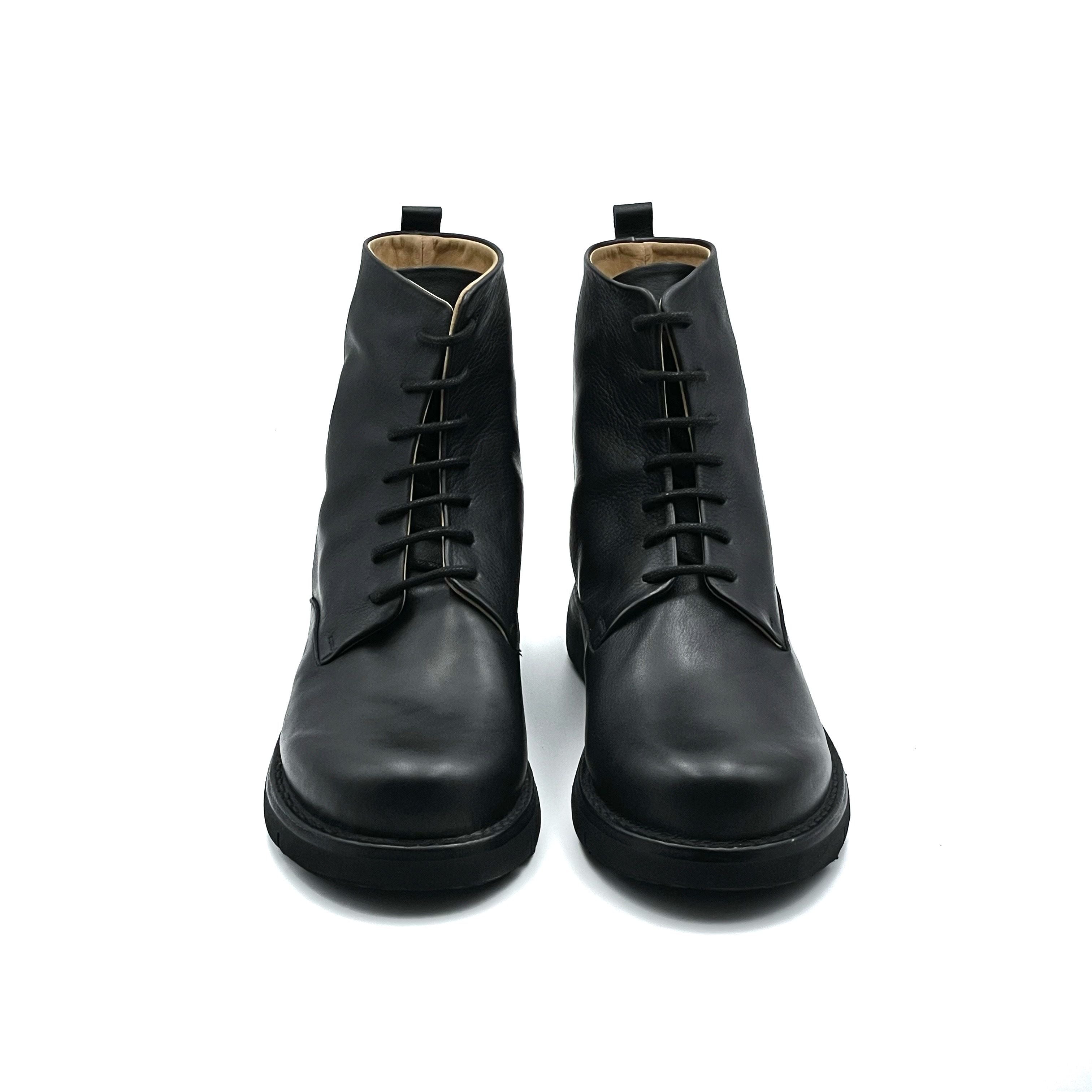 (EN) Comfortable ankle boot with a rounded and cosy shape. It has an anatomical latex footbed on the inside (1 cm high on the heel) covered in leather, which not only offers comfort and relief for the body weight, but can also be replaced with a personal orthopaedic footbed. You can adjust the fit - depending on your instep and ankle measures - by simply regulating the laces. The Vibram rubber sole is 3 cm high on the heel and 2 cm high on the sole.