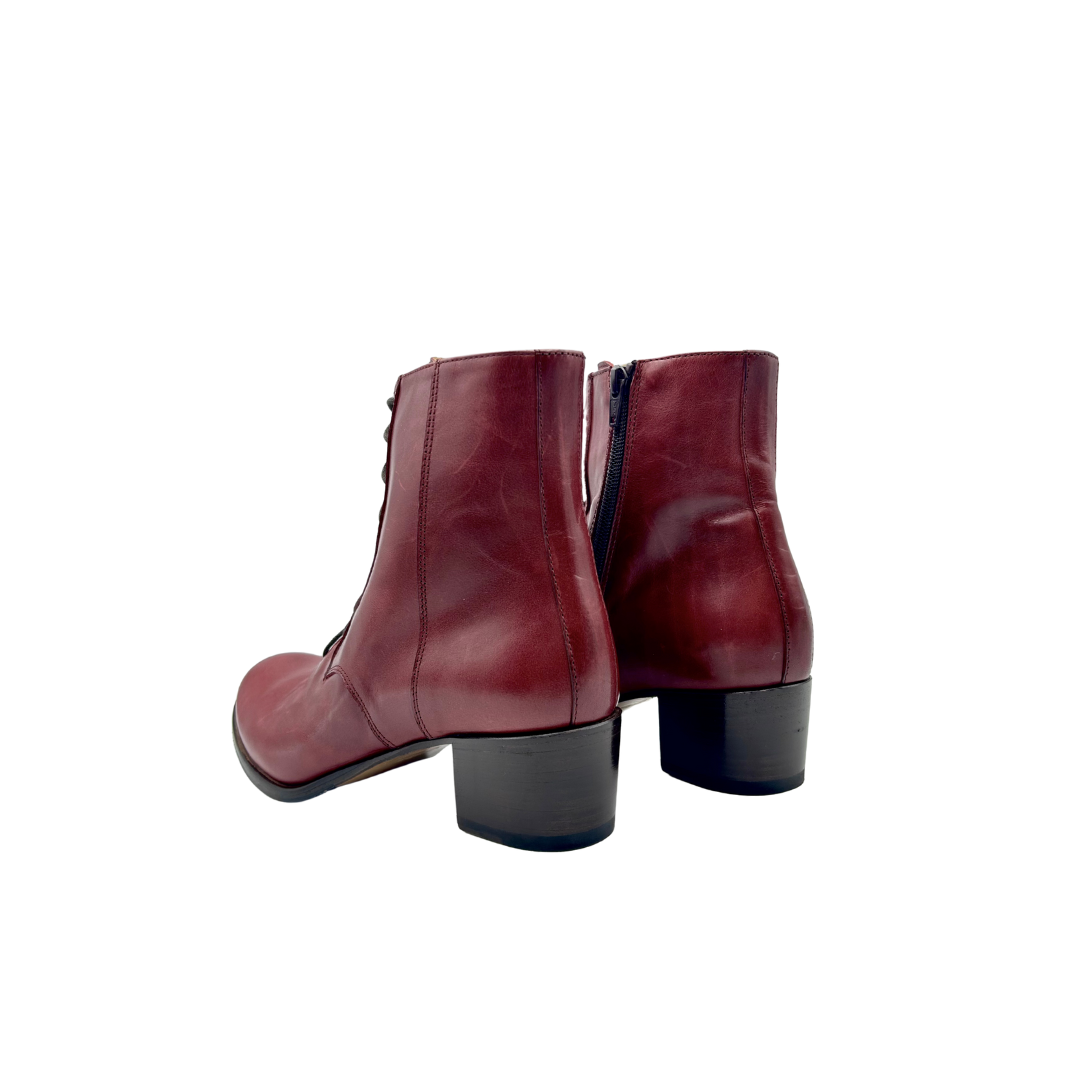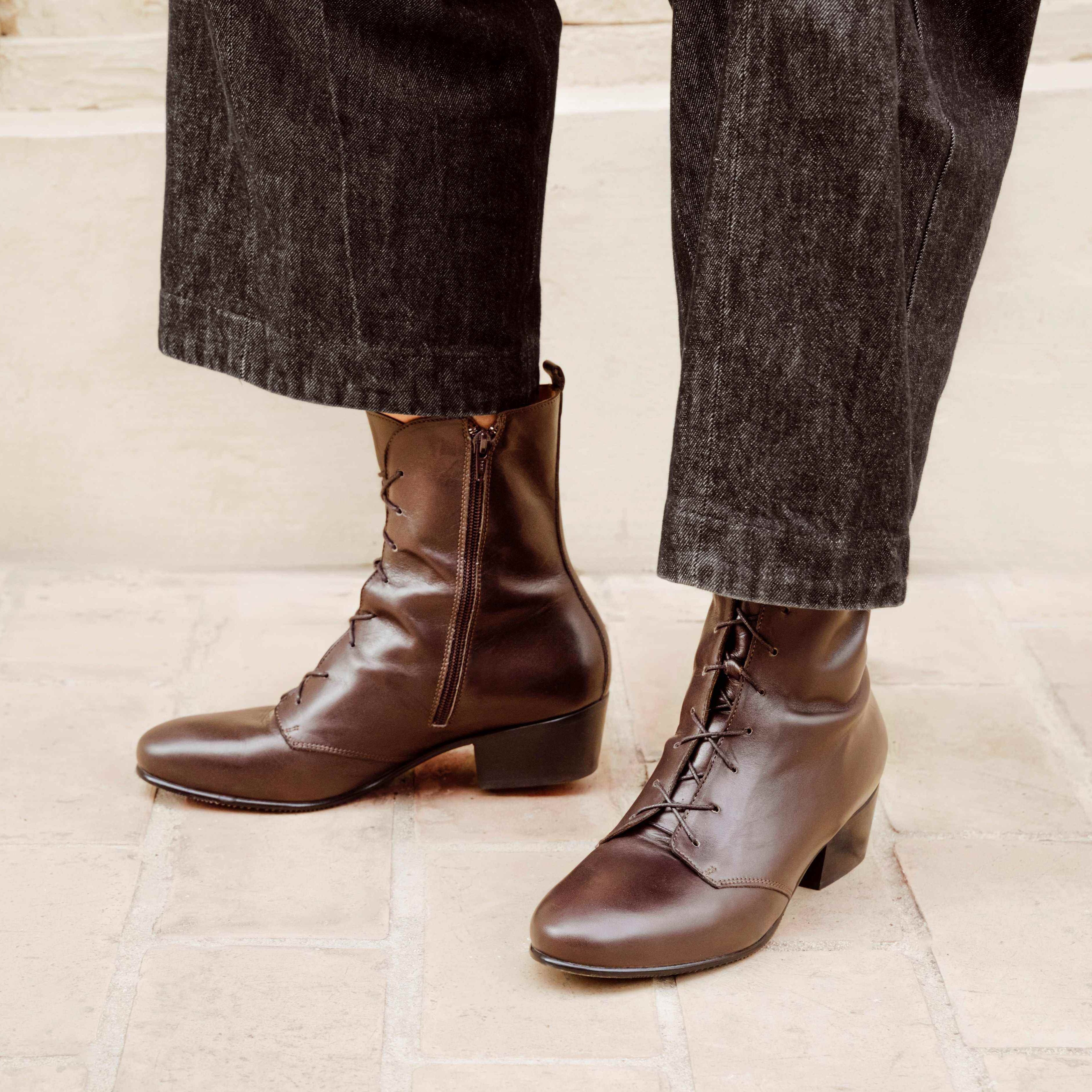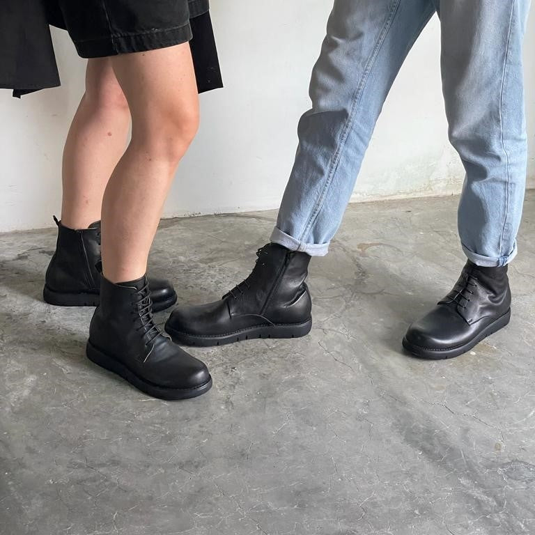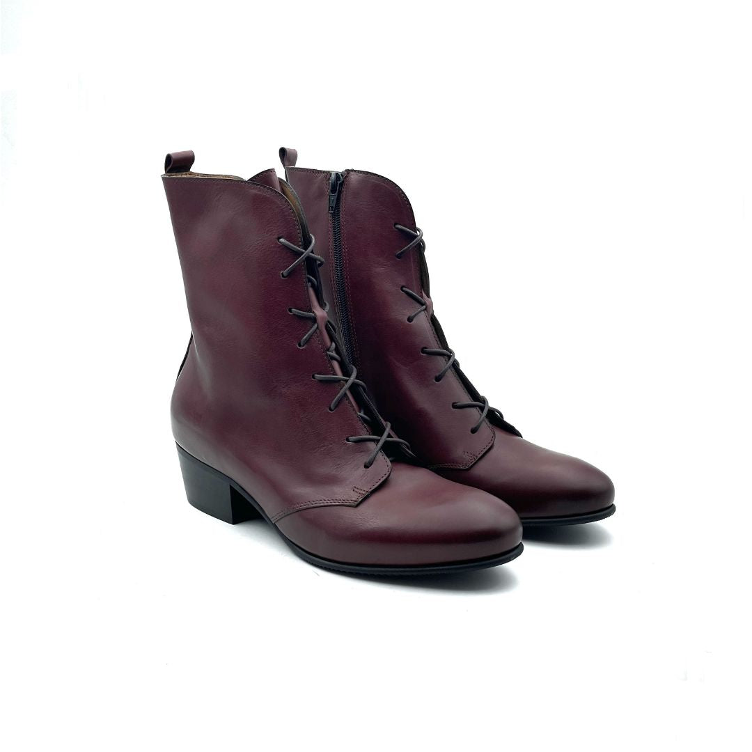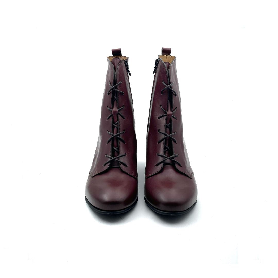 (EN) Comfortable ankle boot with a rounded and cosy shape. It has an anatomical latex footbed on the inside (1 cm high on the heel) covered in leather, which not only offers comfort and relief for the body weight, but can also be replaced with a personal orthopaedic footbed. You can adjust the fit - depending on your instep and ankle measures - by simply regulating the laces. The Vibram rubber sole is 3 cm high on the heel and 2 cm high on the sole.