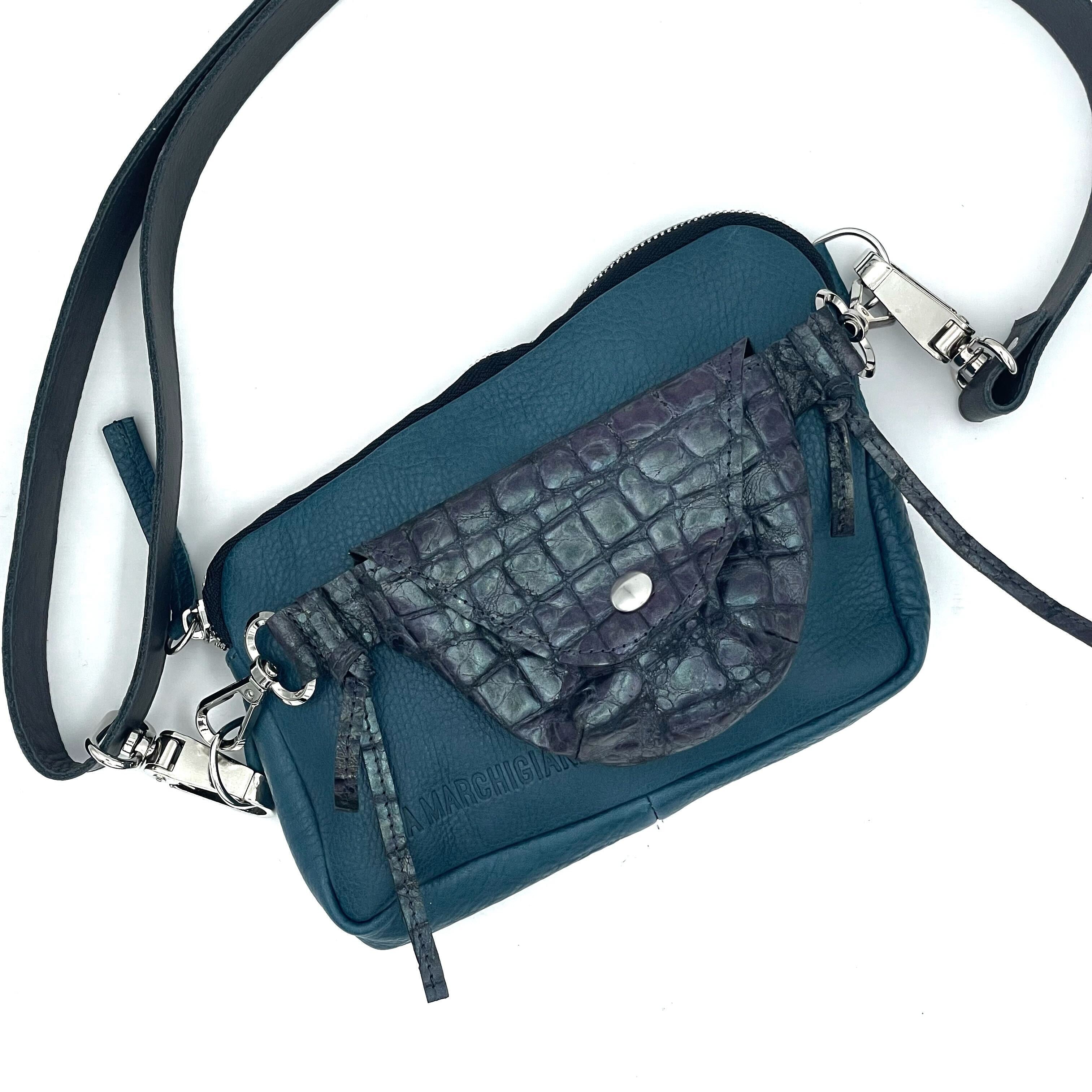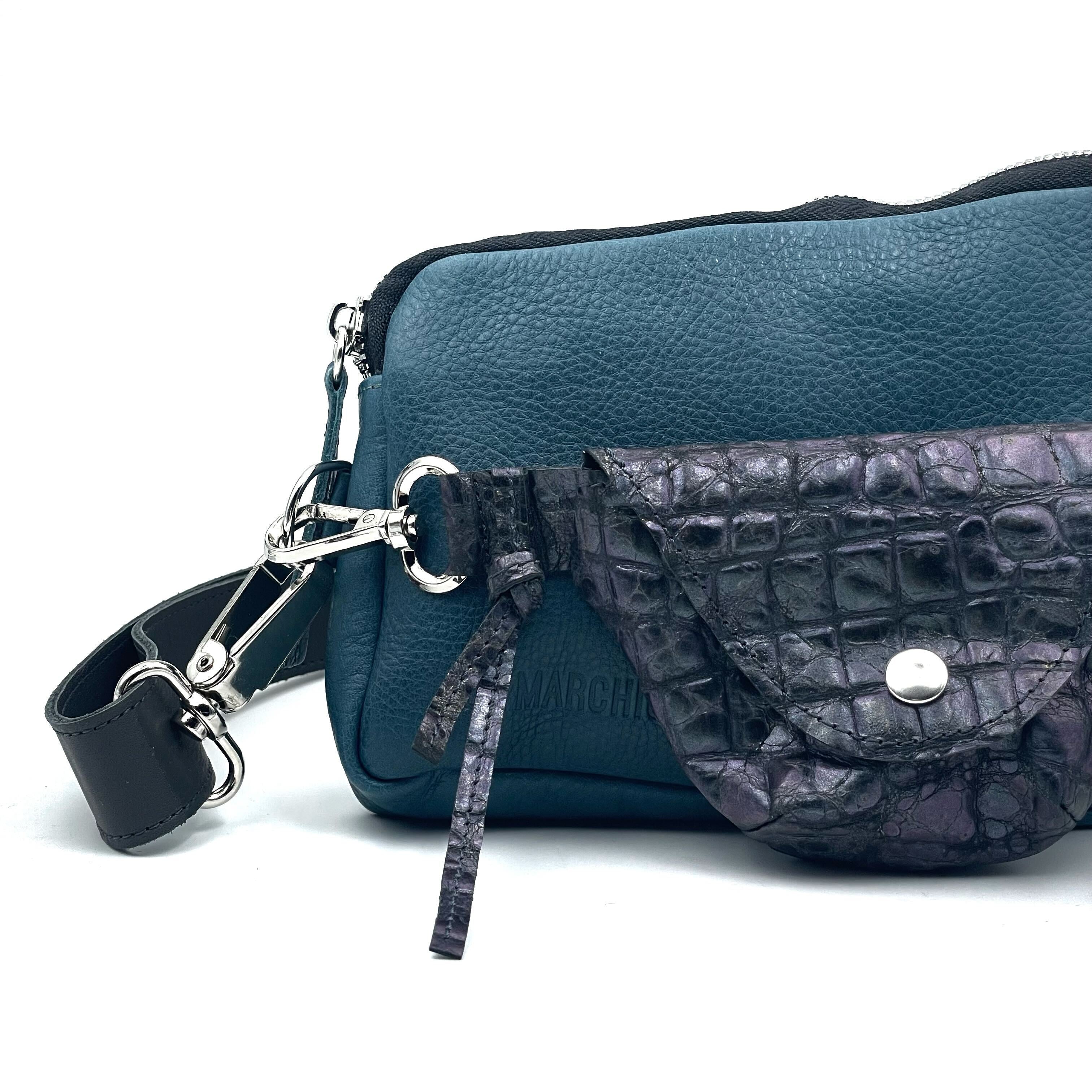 Dimensioni: 19x14x4 cm; lunghezza cerniera ingresso 26 cm; dimensioni taschino rimovibile 10x10 cm; divisorio interno 17x9 cm; lunghezza tracolla min 82 cm / max 98 cm.