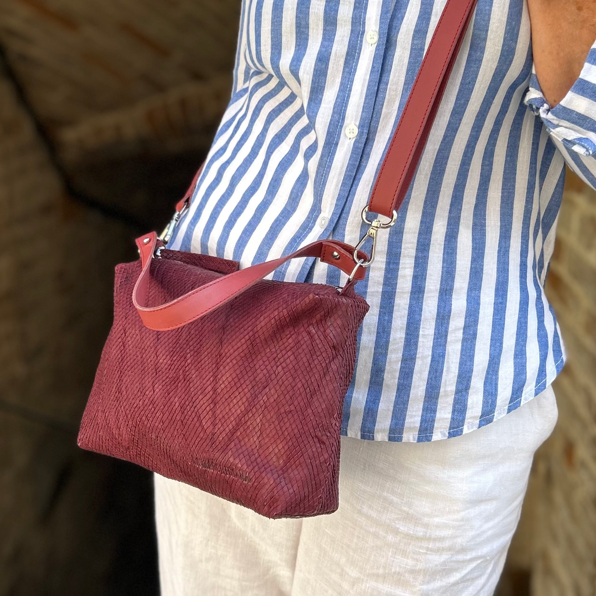 I pellami che scegliamo sono tutti di fine serie, perché crediamo nell’impiego di materiali di prima qualità ma avanzati da altre produzioni. Non si tratta di scampoli, ma di centinaia di metri quadri che, se utilizzati, fanno la differenza nella salvaguardia del nostro Pianeta. Per questa ragione i pellami sono sempre diversi, pur mantenendo invariati texture e spessore.