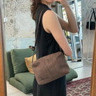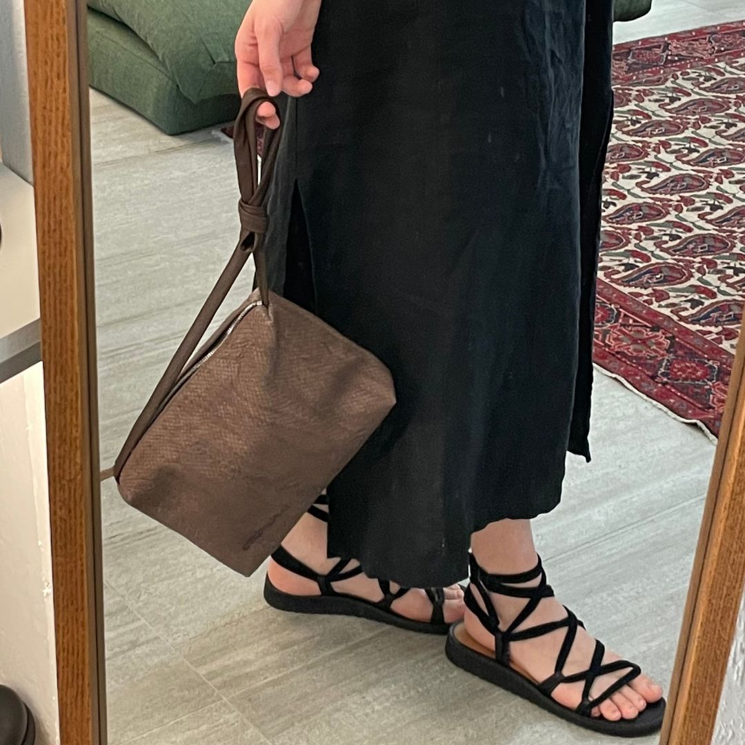 Un cuscino per sentirci coccolate anche in giro per la città. Borsetta super morbida in vitello con tasca interna zip e tracolla in nappa rinforzata. Prende la forma di ciò che gli metti dentro e si accorcia quanto vuoi: basta fare un nodo alla misura che ti serve. È una tracolla che può diventare una pochette a spalla. Da portare in viaggio perché si infila nella valigia o nello zaino