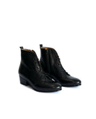 Questo polacchino, con gambale 15 cm circa e zip interna, è la versione bassa dello stivaletto best seller Jane Eyre. Si addice a chi preferisce pantaloni anche aderenti e gonne dallo stile più sportivo, ad abbinamenti romantici e sognanti. Con un gambale che arriva appena sopra la caviglia, questo polacchino derivato dalla sua versione più romantica, assume un'aria più contemporanea e grintosa. Il tacco alto 45 mm è abbastanza largo per farti sentire sicura nell'indossarlo quotidianamente da mattina a sera. Il plantare interno in lattice è estraibile e permette di scaricare correttamente il peso del nostro corpo dal tallone al metatarso. Grazie ai lacci è possibile calibrare la calzata a seconda del tipo di piede e della stanchezza delle caviglie.