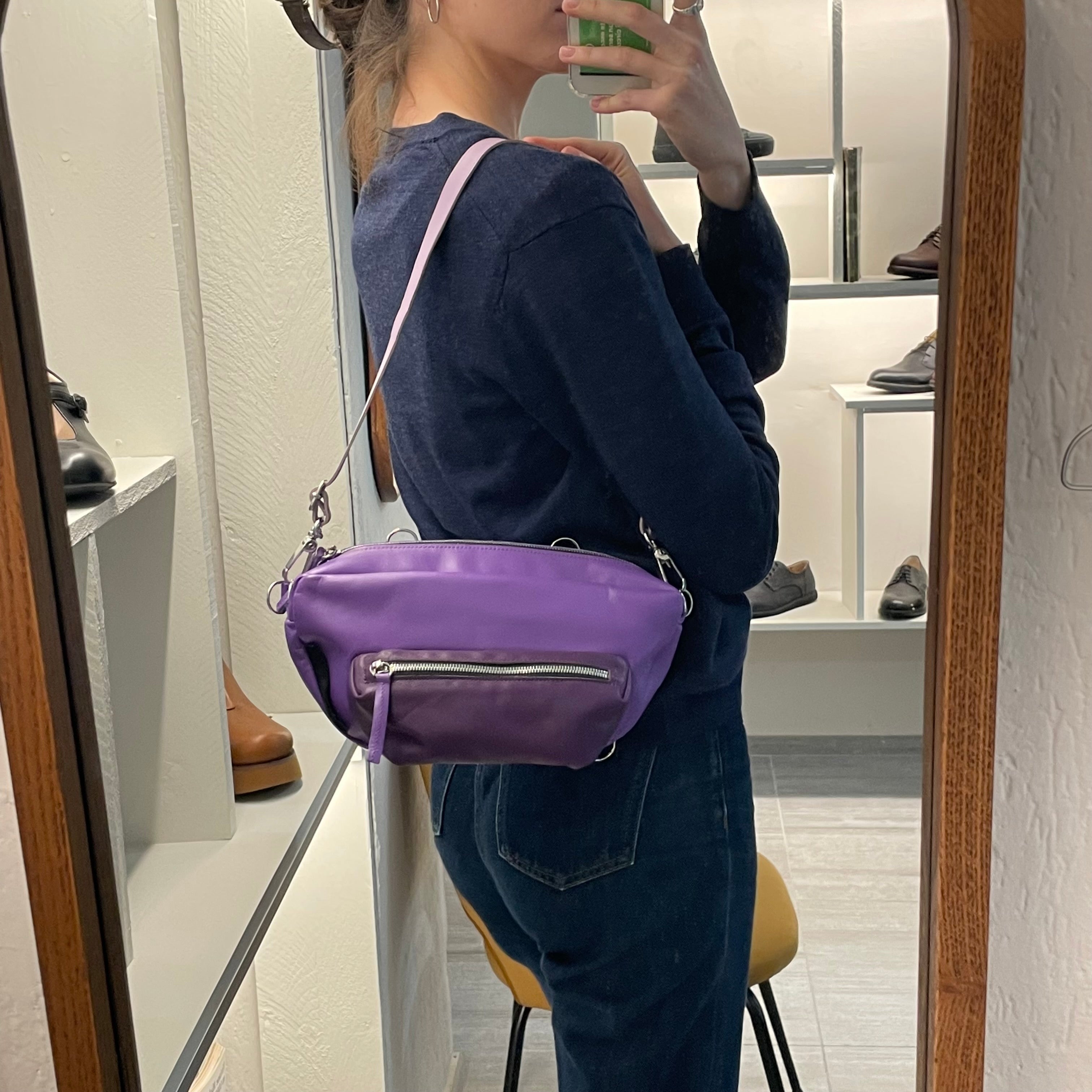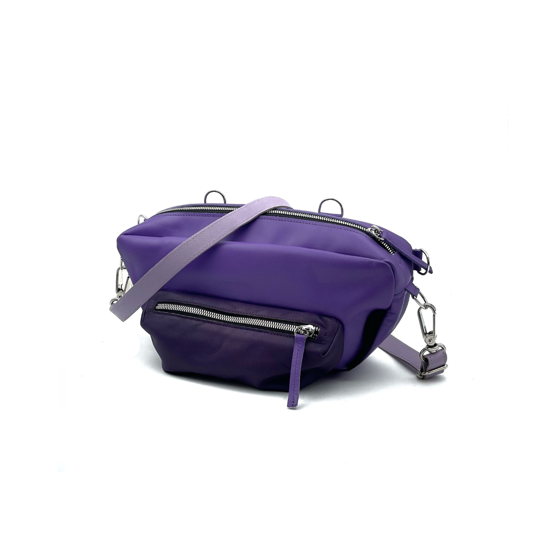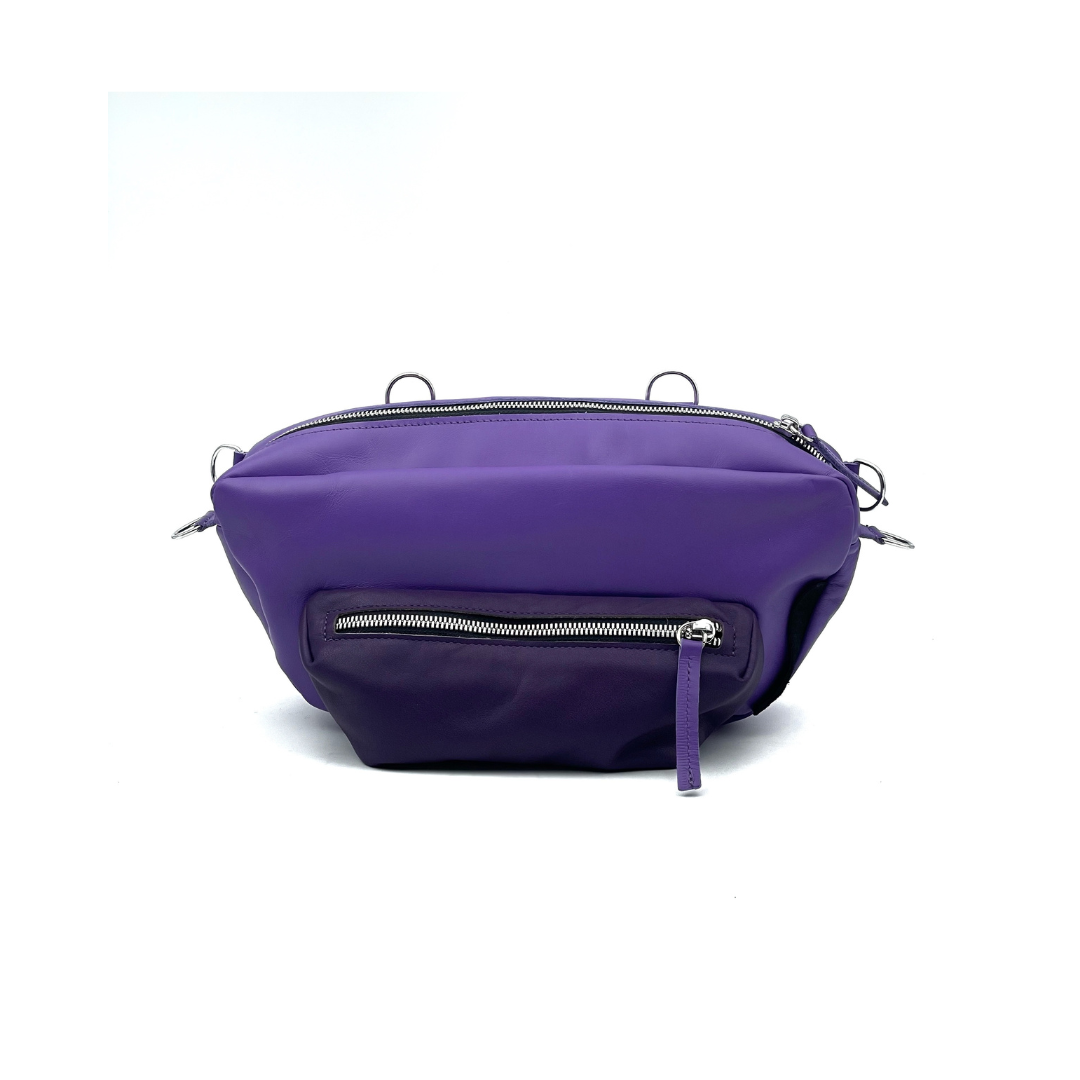 Diverso perché flessibile e piccolo abbastanza da essere adatto al matrimonio dell'amica di una vita come alla gitarella fuori porta. Così ogni gancetto ha una sua funzione e, spostando gli spallacci, si passa dal marsupio, alla pochette corta, alla tracollina fino allo zainetto. Multiplo appunto.