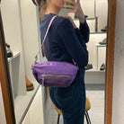 Dimensioni: 32x14x7 cm; ingresso zip borsa 28 cm; le dimensioni del taschino esterno sono 16x8x3 cm con zip da 13 cm. La modella è alta 1,75 m