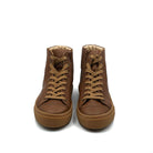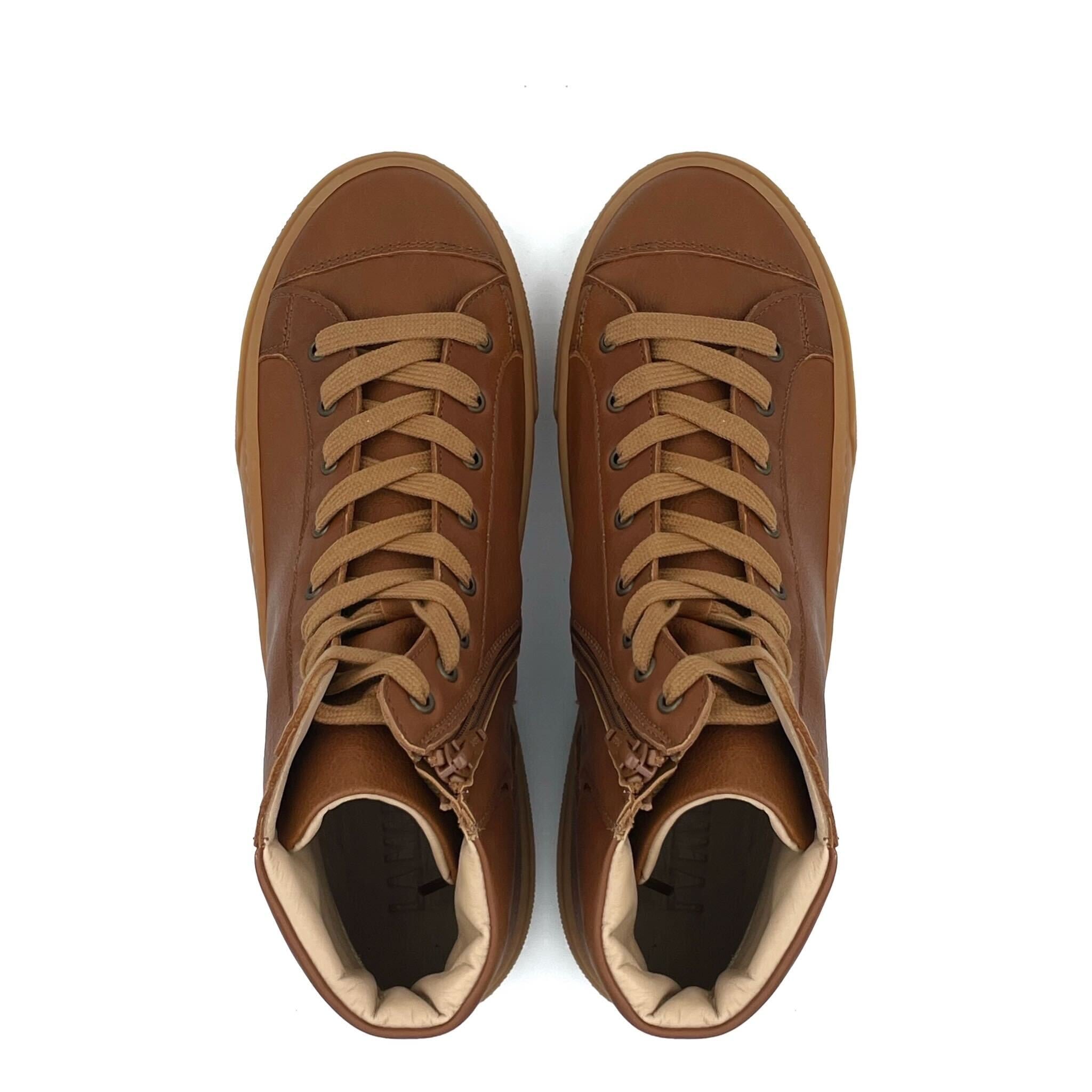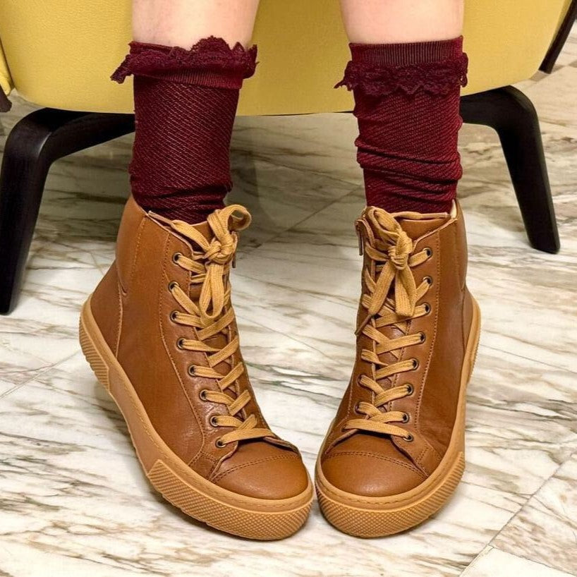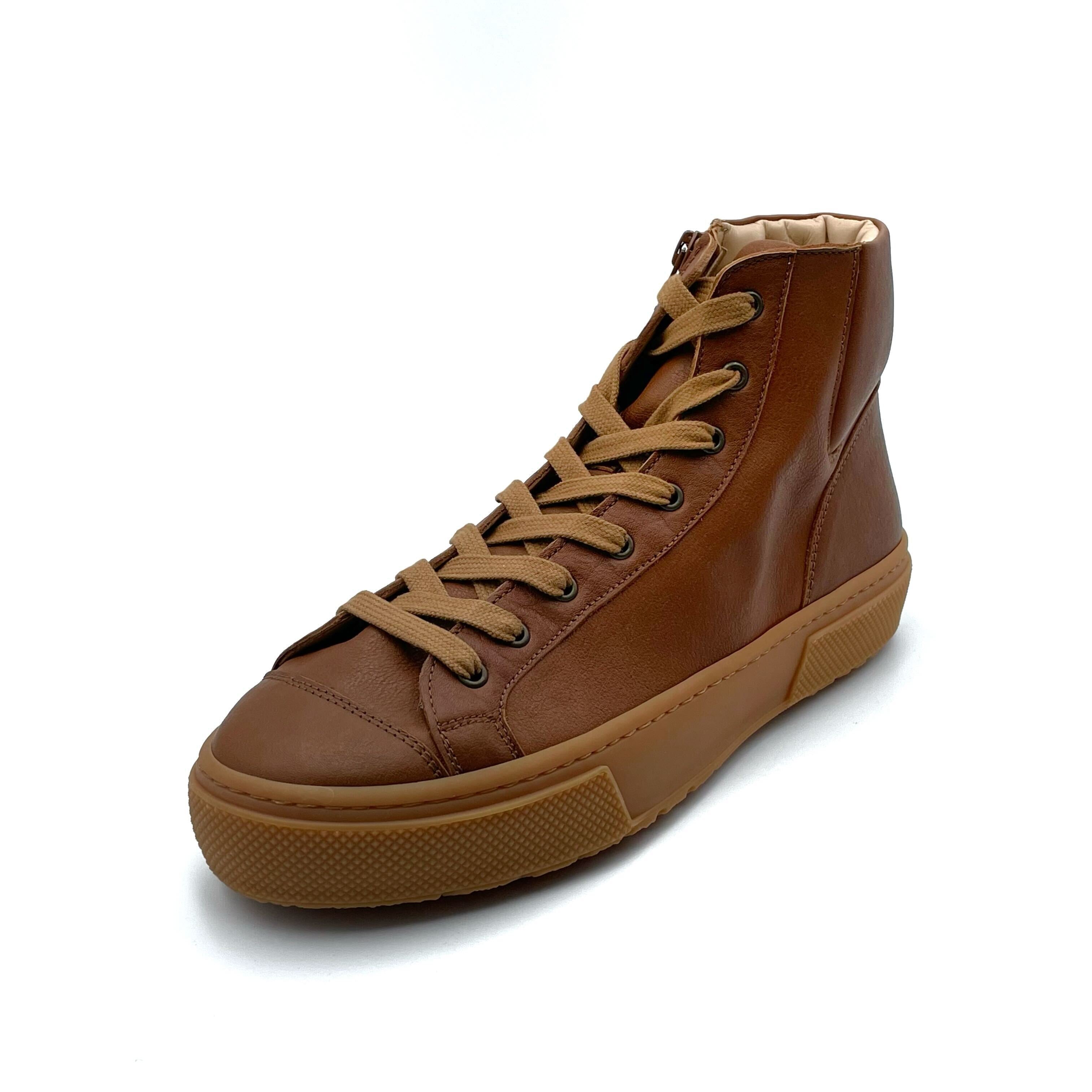 Sono finalmente arrivate le sneakers firmate La Marchigiana: realizzate interamente in pelle, ti salvano l'inverno senza farti rinunciare allo stile. Il gambale è di 13 cm e arriva appena sopra la caviglia. Per rendere l'apertura e la chiusura più veloce abbiamo previsto la zip così, una volta legati i lacci dal metatarso al collo del piede, fate il bel nodino nascosto e non ci pensate più! Linguetta e gambale sono ammorbiditi dalla presenza di gomma piuma e la suola Vibram è cucita intorno alla tomaia. Infine, la super flessibilità delle NYC è data dalla lavorazione a Strobel e dal plantare estraibile in lattice alto 20 mm sul tallone con dislivello in sul davanti di 10 mm. I colori in prevendita saranno il nero, il miele e il latte