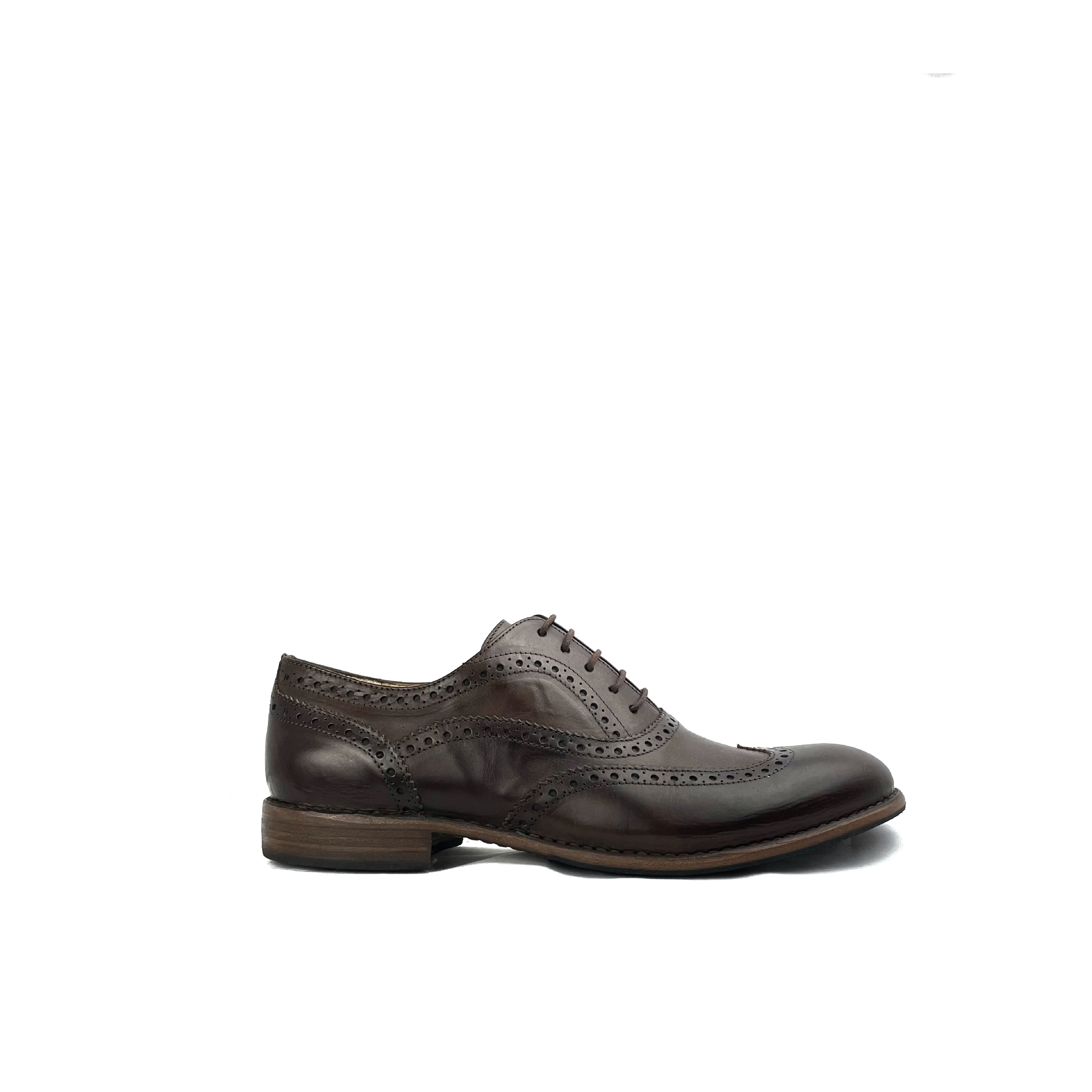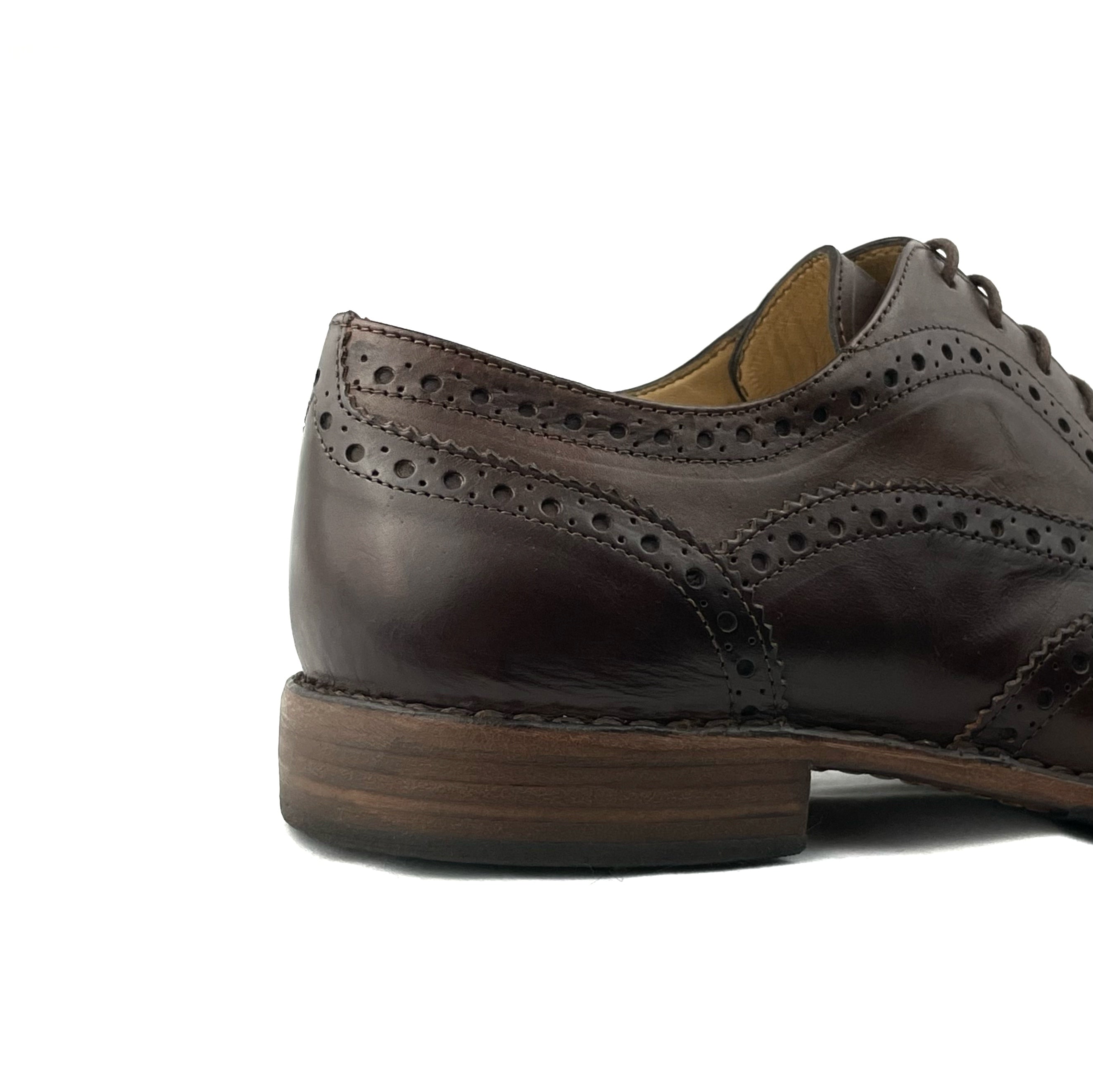 Si tratta di una Oxford brogue a coda di rondine, dalla forma affusolata ma dalla pianta accogliente. È la scarpa classica ma non troppo, che risolve matrimoni, riunioni, eventi formali e non: ogni momento della vita maschile. Si distingue per la volumetria, studiata per assecondare quella anatomica, e per la presenza del plantare in lattice, destinato ad assorbire il peso corporeo in maniera uniforme. Il plantare estraibile lascia spazio ad eventuali plantari ortopedici.