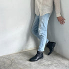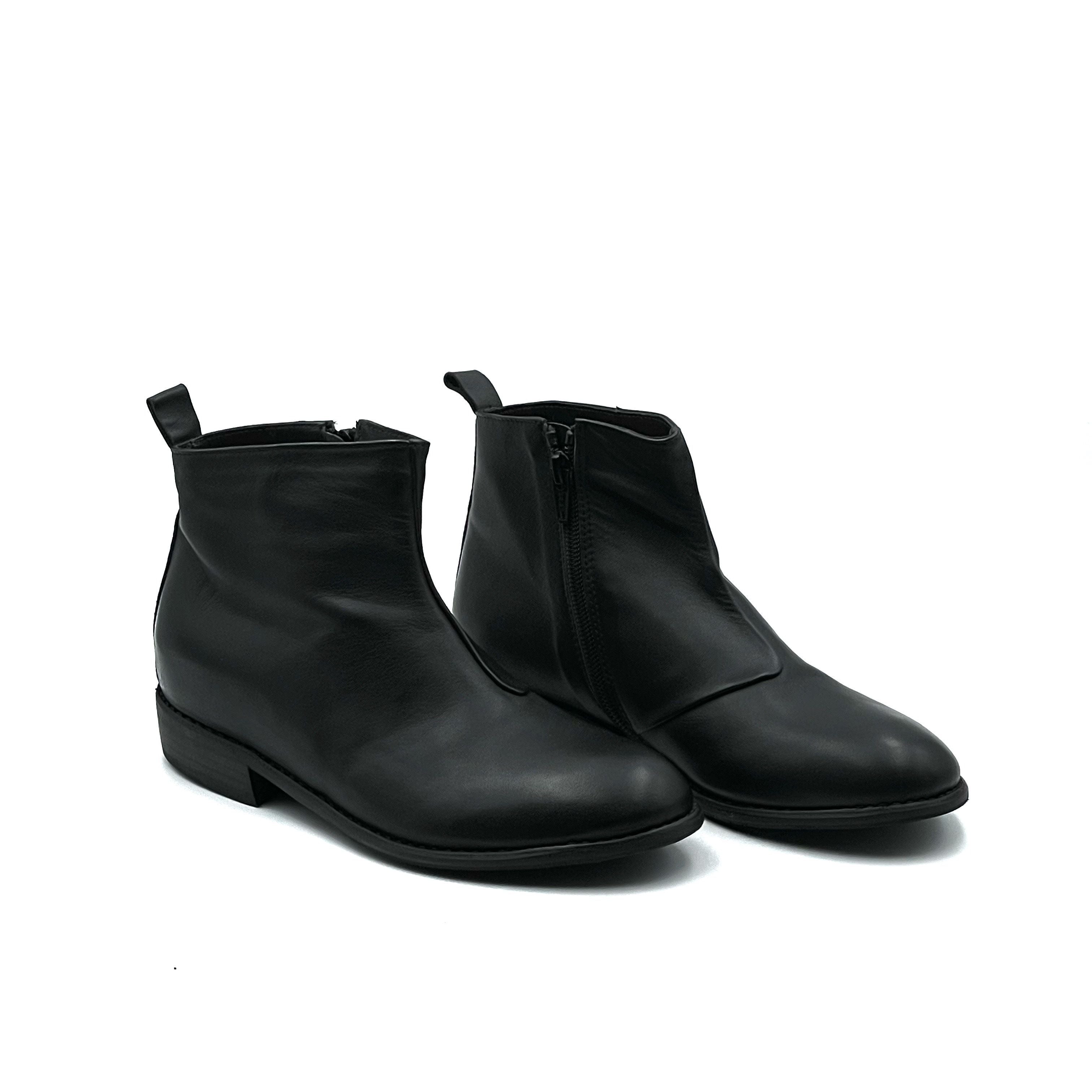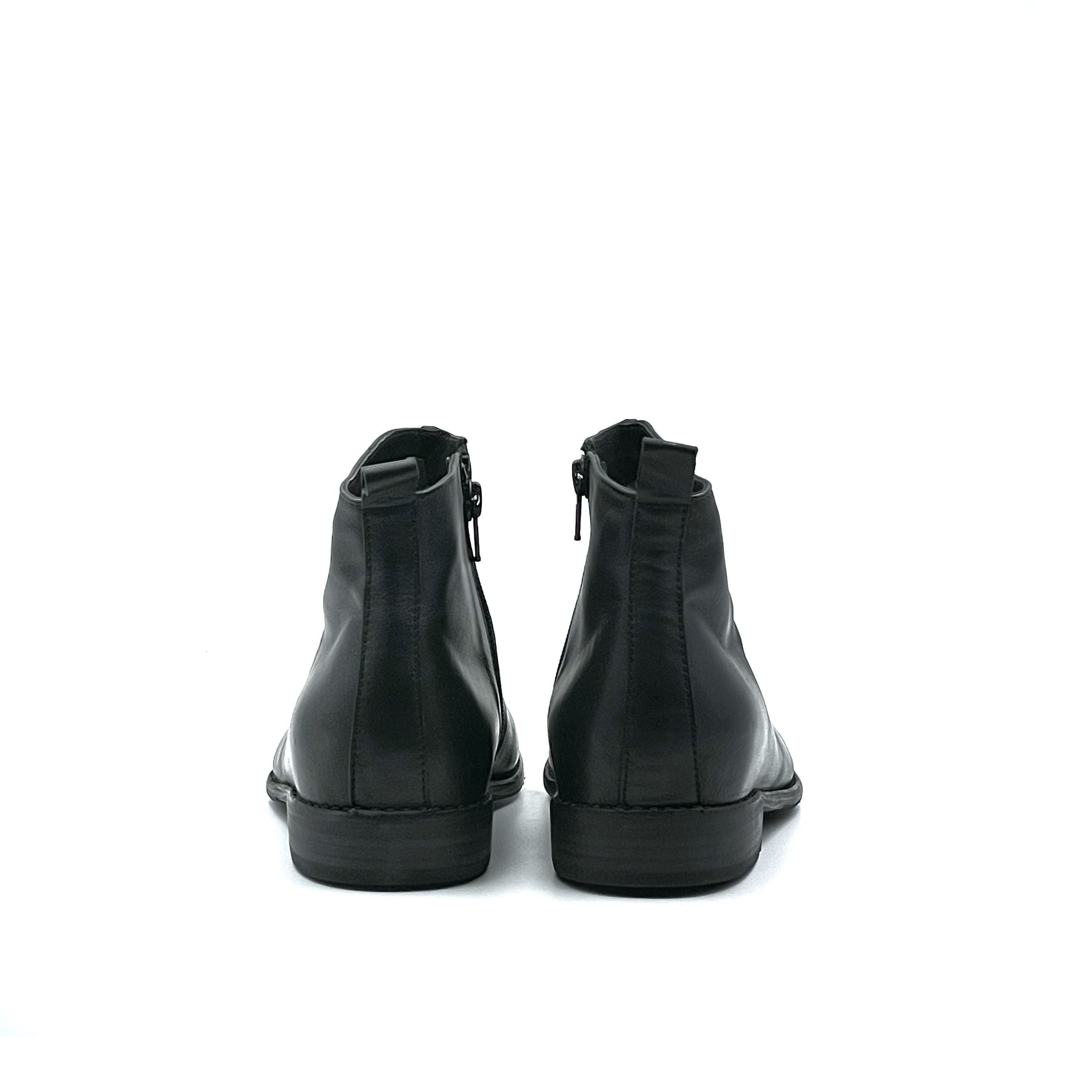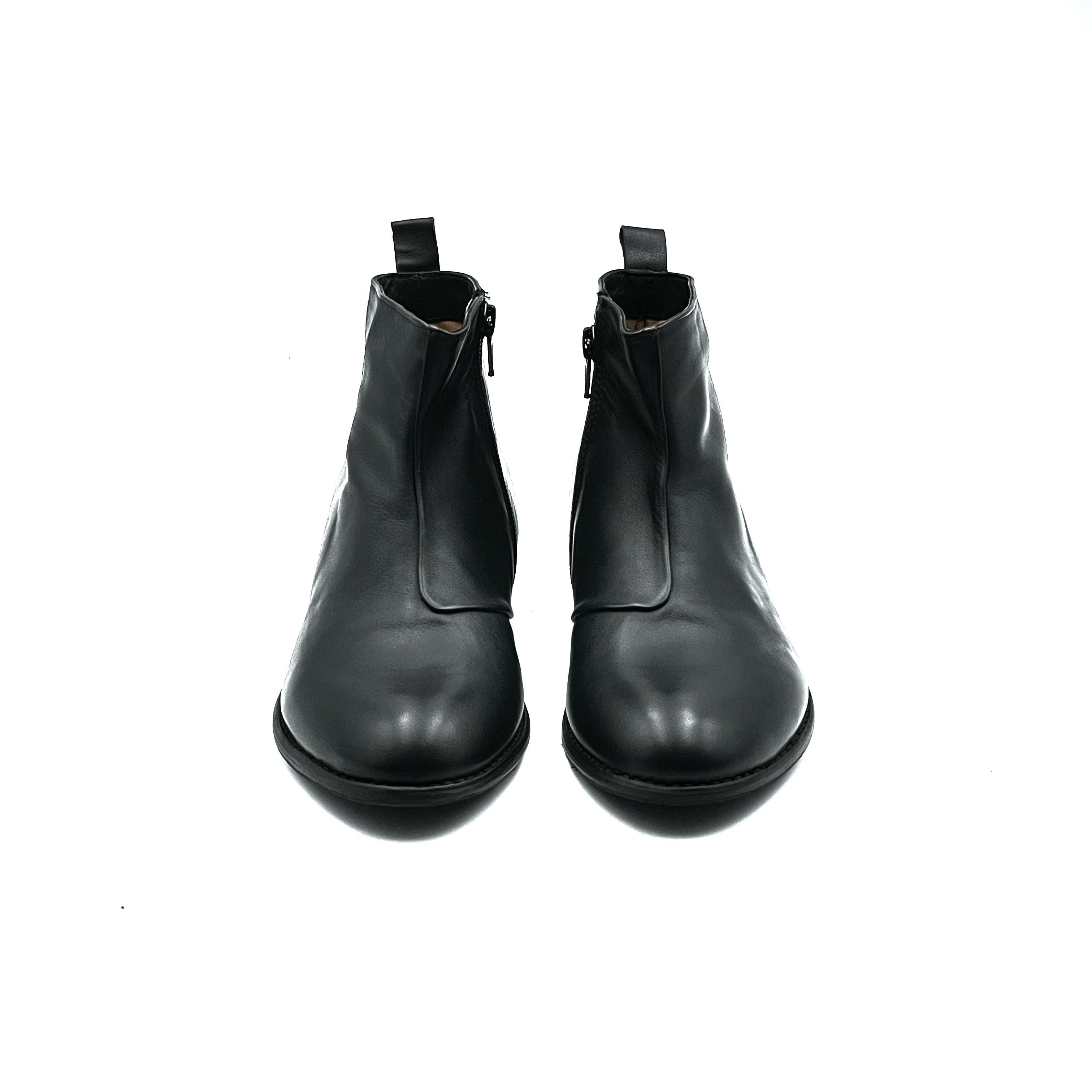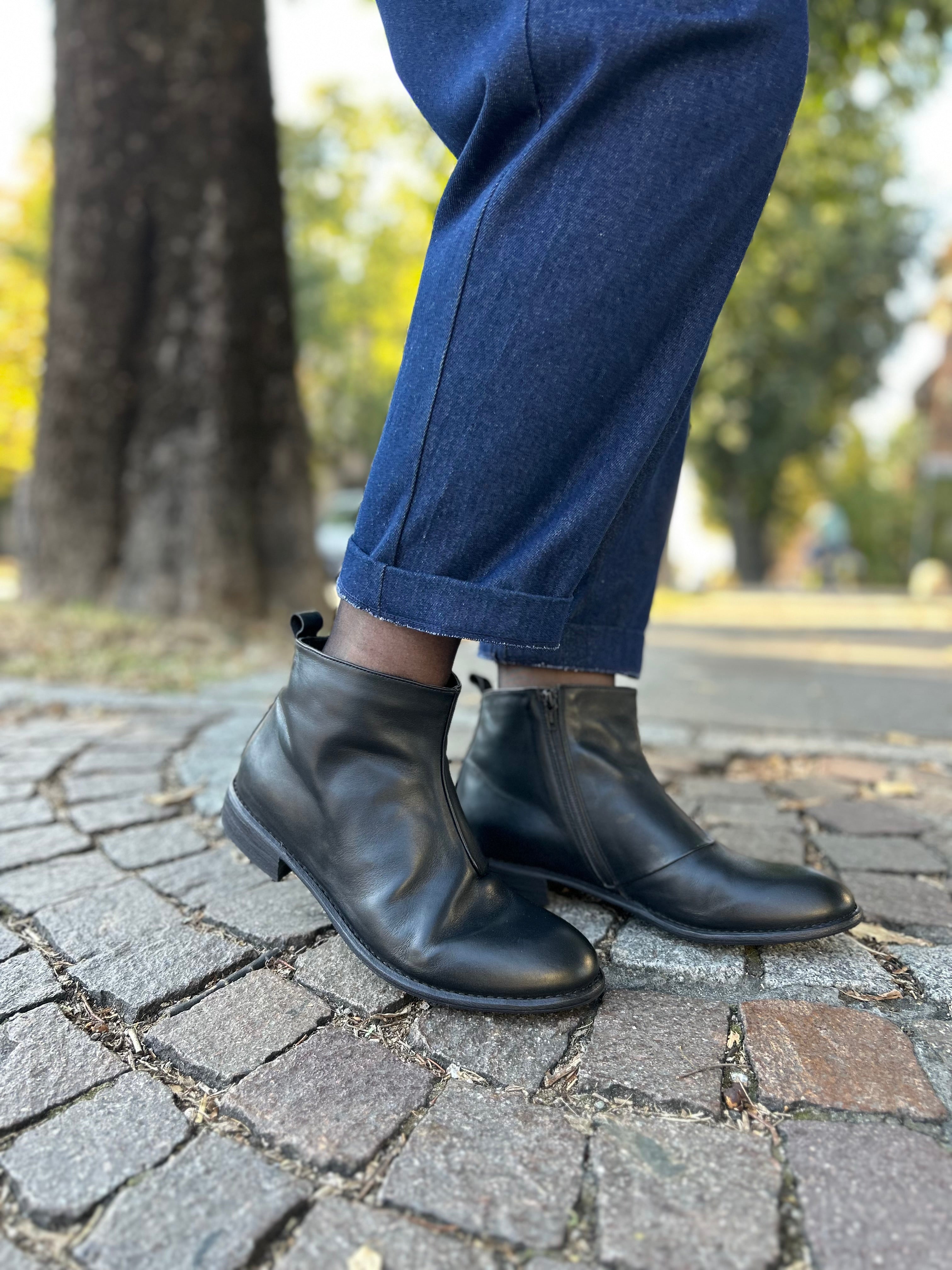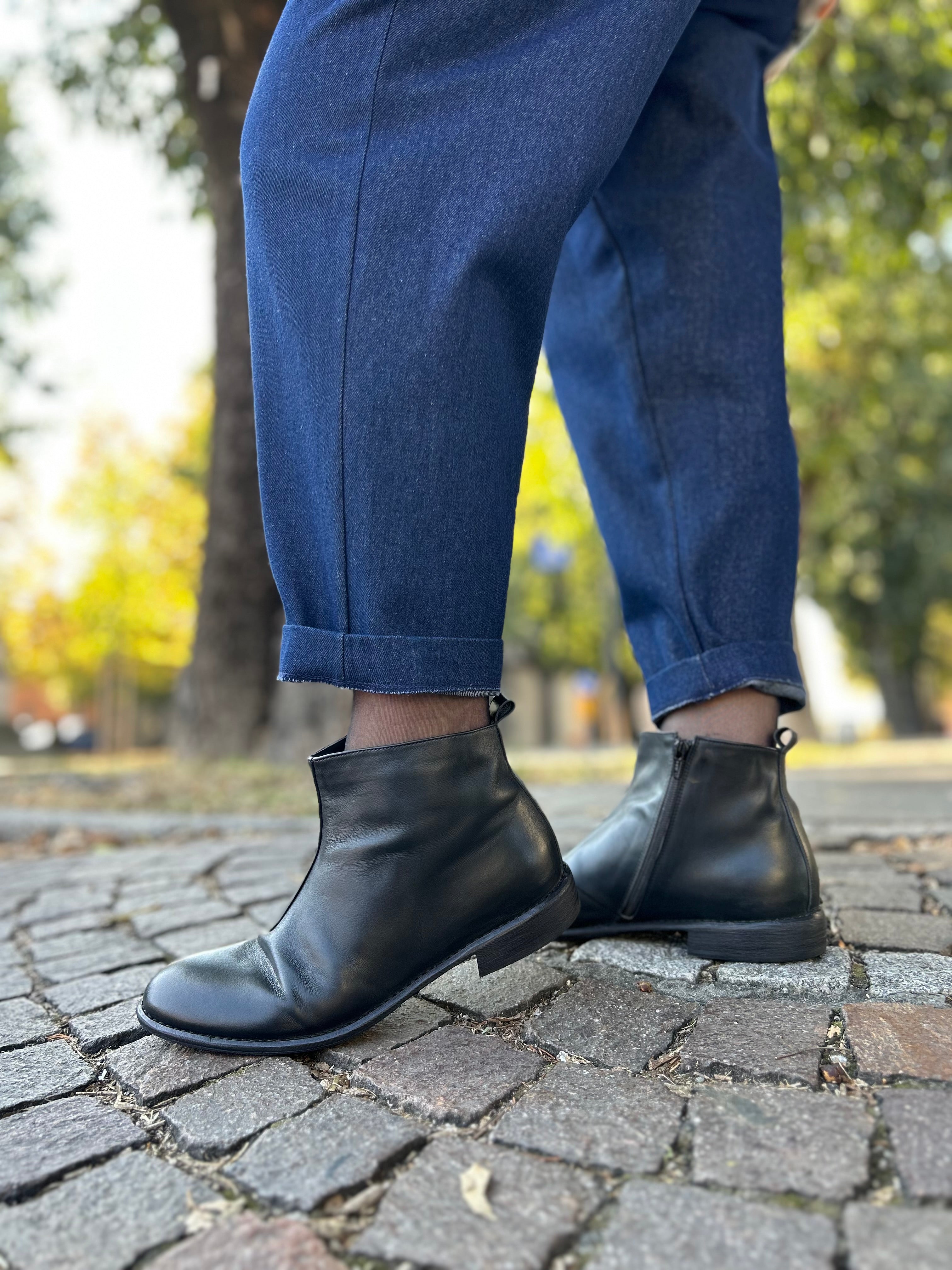 Stivaletto alla caviglia, con la calzata di un texanino, quindi mobile sul tallone ma dalla linea francese, asciutta. L'ho pensato ai piedi di Serge Gainsbourg, indossato con negligenza, graffiato da una vita di dolcezze ed eccessi. Te lo consiglio se ami godere la vita così come viene. Il plantare estraibile in lattice rivestito in pelle, offre un posto morbido ai piedini più ribelli. La suola è cucita alla tomaia e l'antiscivolo può essere sostituito nel tempo.