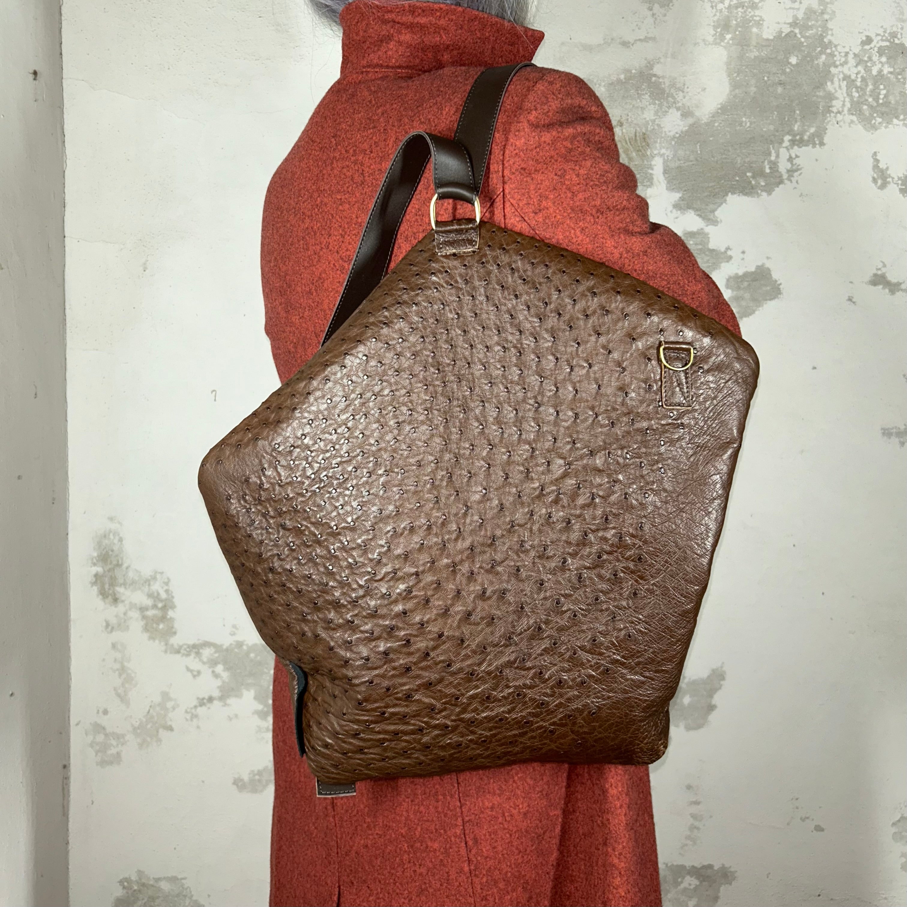 Una borsa che sembra un cuscino, con gli ingressi nascosti e accessibili solo a te che sai. Sa accompagnarti in ogni situazione: è zaino ma può diventare tracolla, e se vuoi essere più femminile diventa una borsa a spalla trapezoidale.