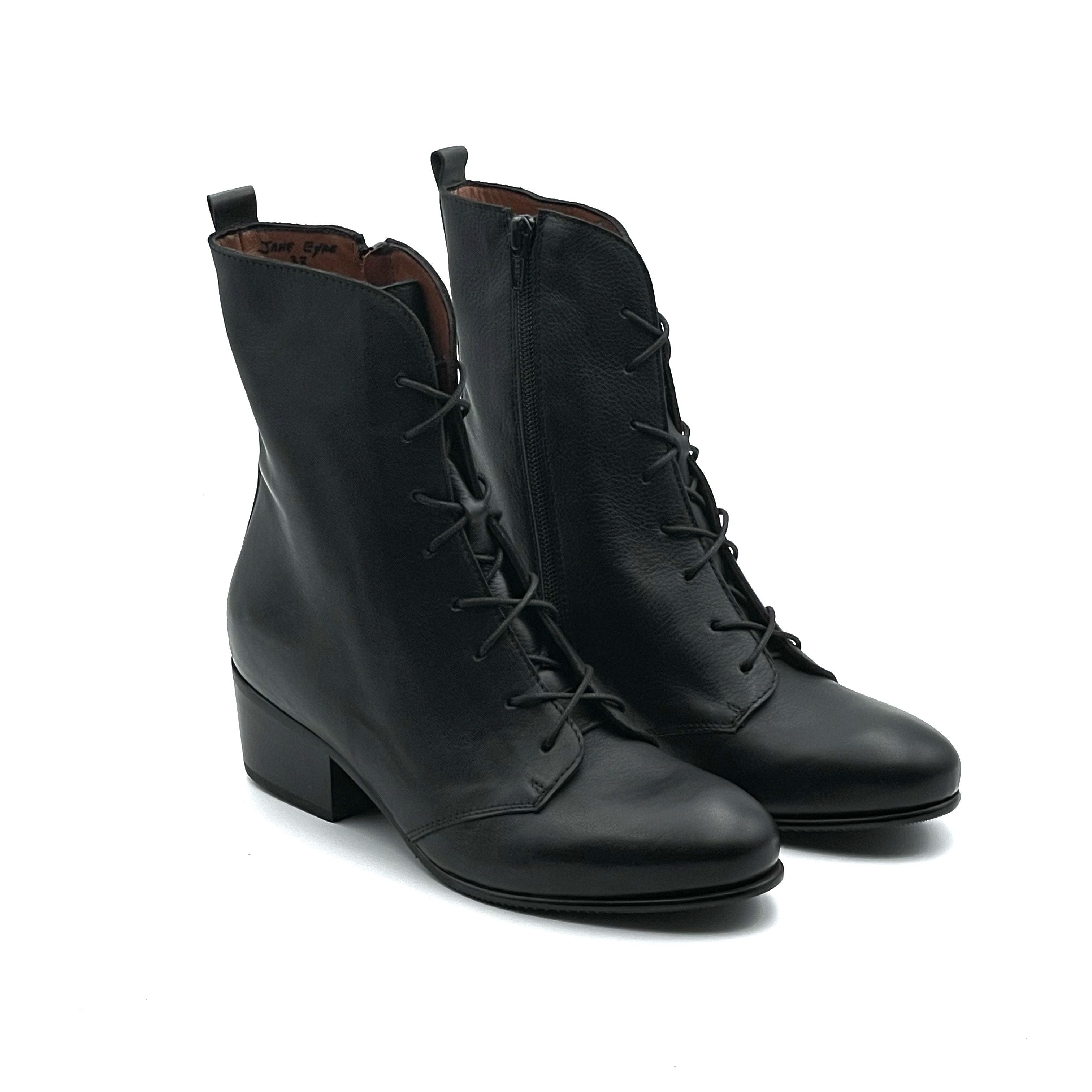 Vivere nell'Ottocento non doveva essere una passeggiata, ma certo che di stile ve n'era a palate! Jane Eyre nasce dalla passione per l'abbigliamento storico e da un mio pallino: rendere adatte alla vita contemporanea le calzature dall'allure antica. Questo stivaletto, con gambale alto 18 cm e zip interna risolve moltissimi abbinamenti e, soprattutto, lo fa con un plantare interno in lattice che ti permette di camminare con leggerezza. Il tacco alto 45 mm è abbastanza largo per farti sentire sicura nell'indossarlo quotidianamente da mattina a sera. Questo perché i lacci permettono di calibrare la calzata a seconda del tipo di piede e della stanchezza delle caviglie.