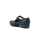 Scarpa femminile con fibbia, dalla forma affusolata ma capiente, ispirata agli anni Ruggenti. Il tacco alto 45 mm viene addolcito dalla soletta interna in lattice rivestita in pelle. L'antiscivolo in gomma garantisce alla suola in cuoio l'impermeabilità alla pioggia.