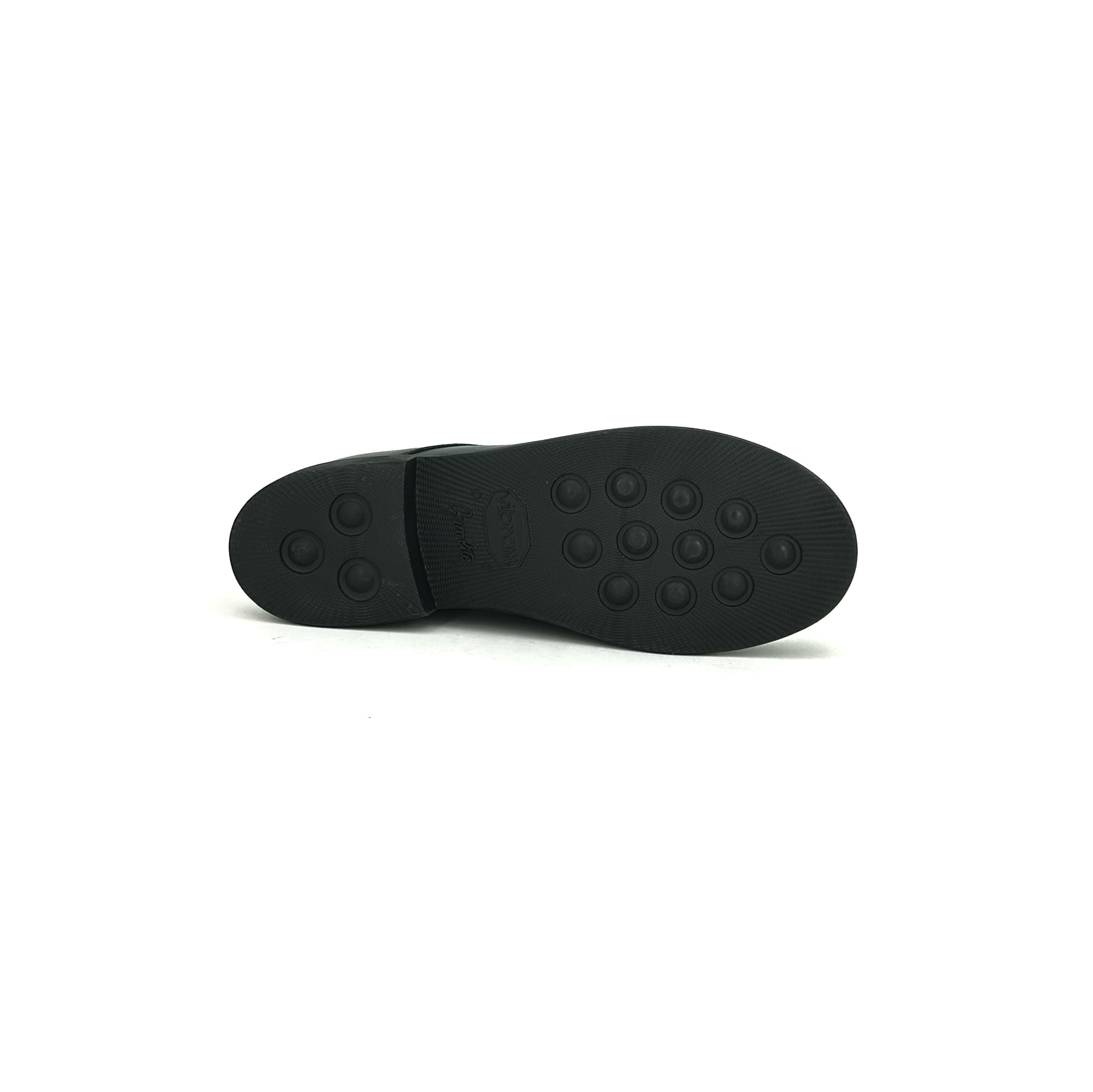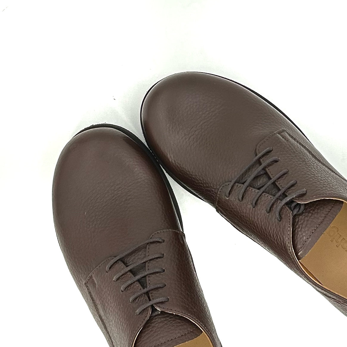 Stringata dalla forma rotonda ispirata allo stile rock indipendente, pensata per chi non riesce a staccarsi dalle derby più famose al mondo. All’interno è previsto un plantare anatomico in lattice ricoperto in pelle, che oltre a offrire comfort e scarico del peso corporeo su un materiale soffice può essere sostituito con un plantare ortopedico personale.