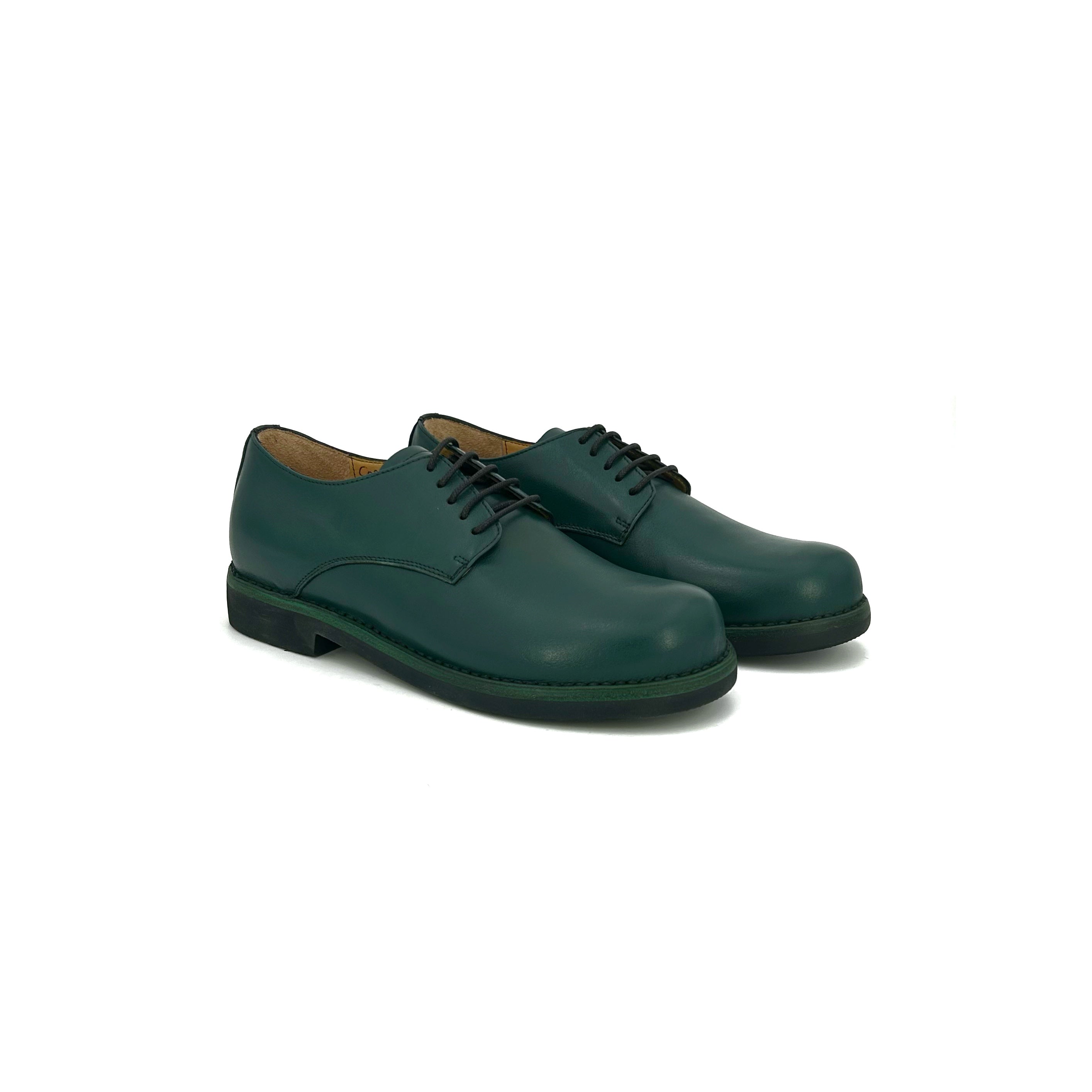 Stringata dalla forma rotonda ispirata allo stile rock indipendente, pensata per chi non riesce a staccarsi dalle derby più famose al mondo. All’interno è previsto un plantare anatomico in lattice ricoperto in pelle, che oltre a offrire comfort e scarico del peso corporeo su un materiale soffice può essere sostituito con un plantare ortopedico personale.