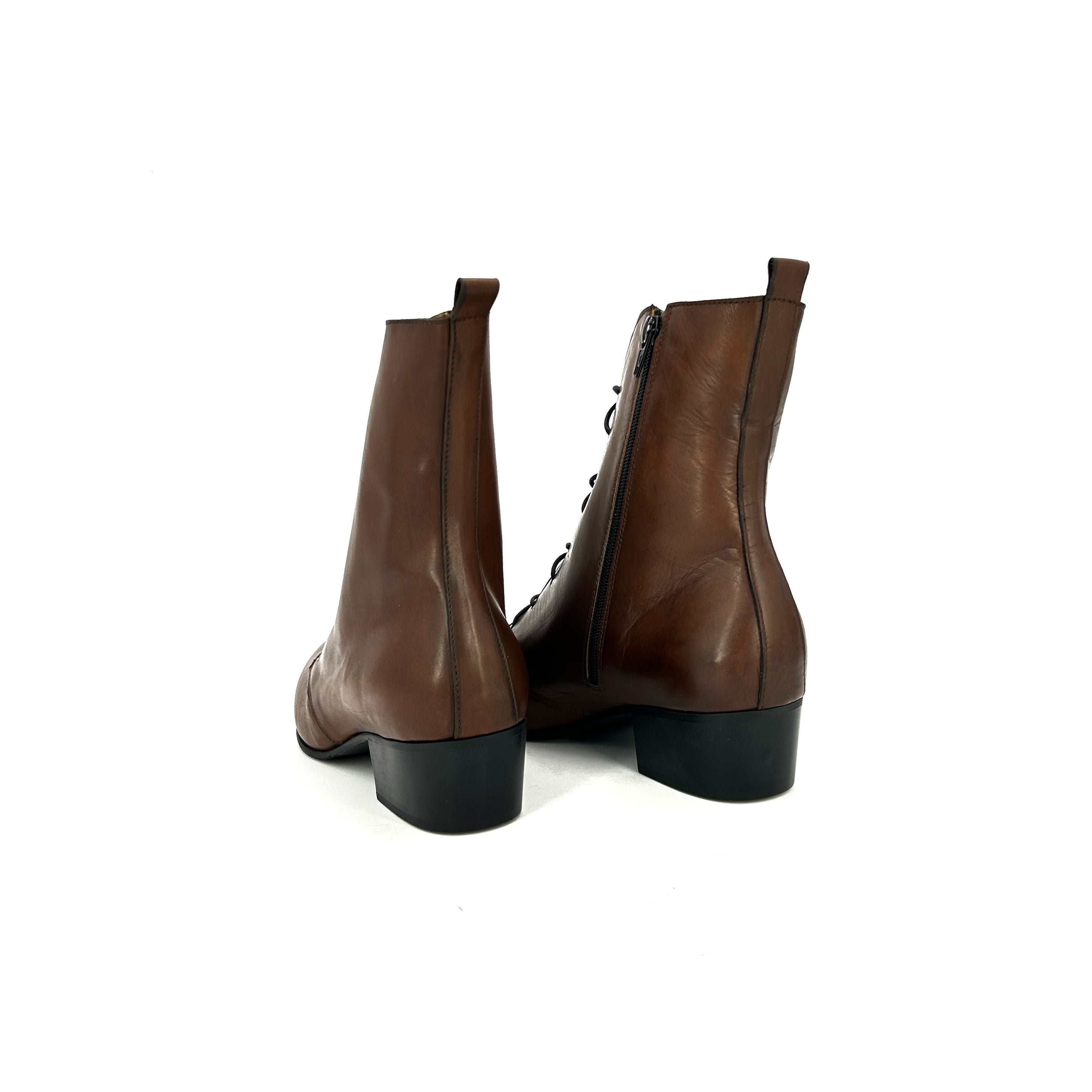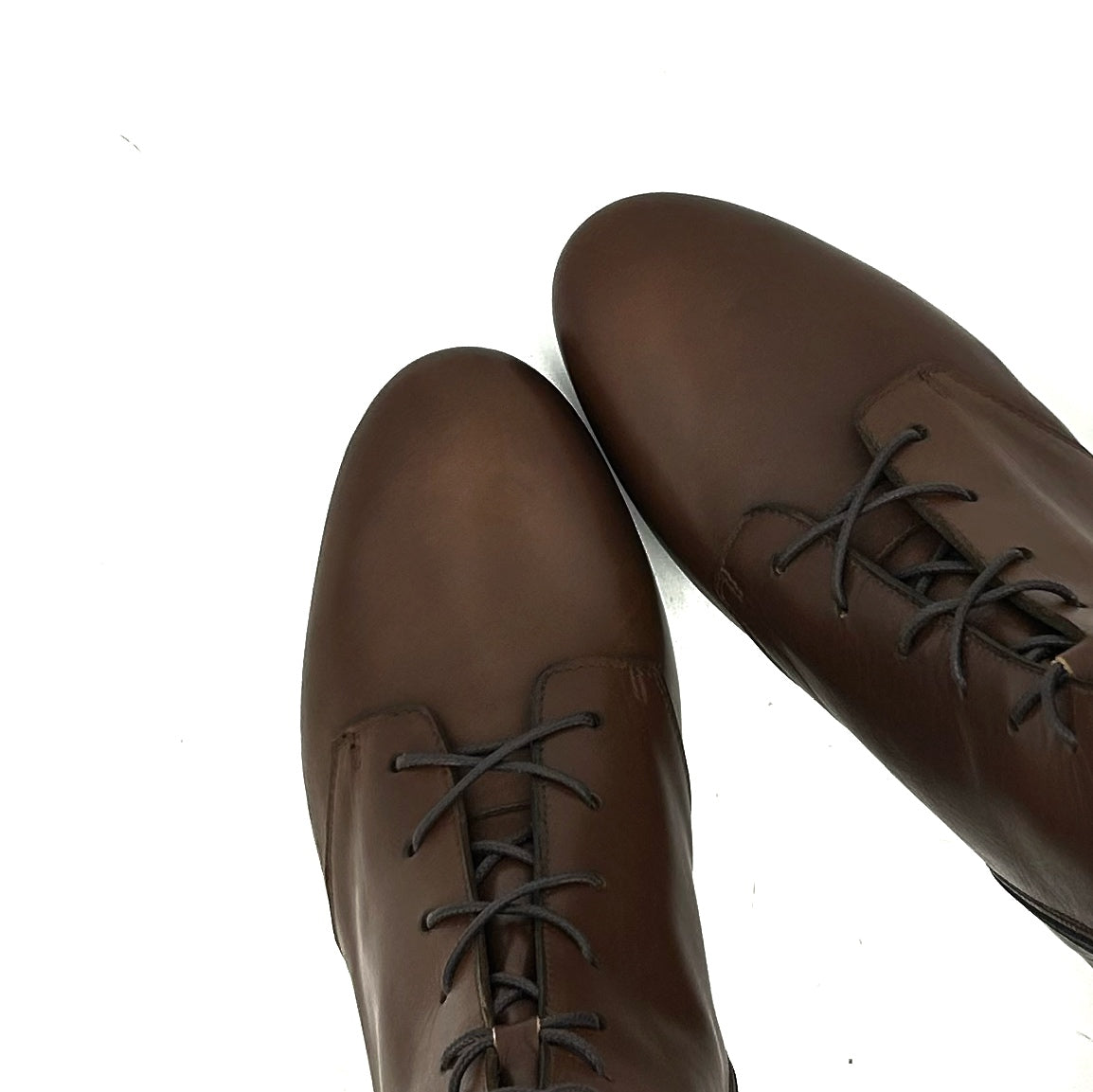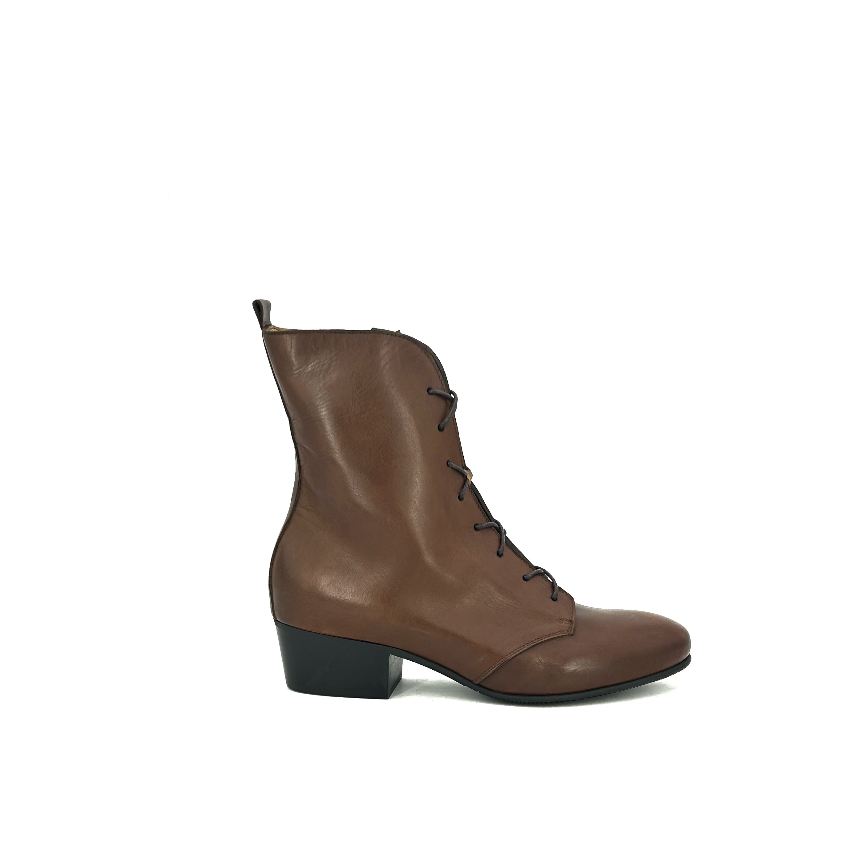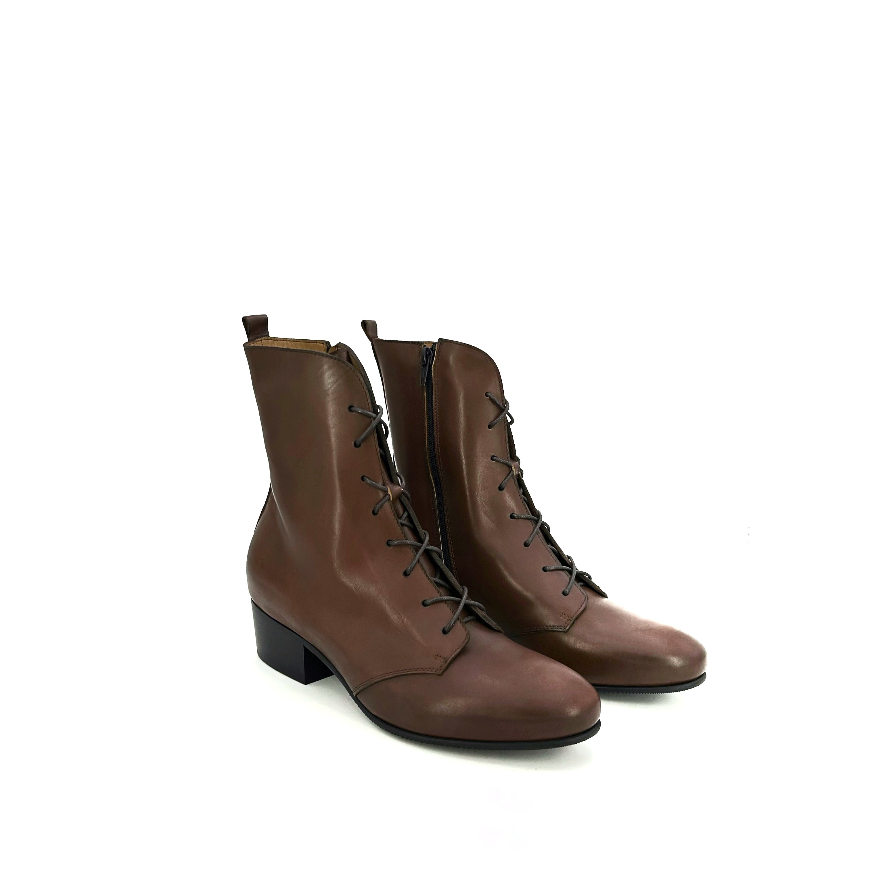 Vivere nell'Ottocento non doveva essere una passeggiata, ma certo che di stile ve n'era a palate! Jane Eyre nasce dalla passione per l'abbigliamento storico e da un mio pallino: rendere adatte alla vita contemporanea le calzature dall'allure antica. Questo stivaletto, con gambale alto 18 cm e zip interna risolve moltissimi abbinamenti e, soprattutto, lo fa con un plantare interno in lattice che ti permette di camminare con leggerezza. Il tacco alto 45 mm è abbastanza largo per farti sentire sicura nell'indossarlo quotidianamente da mattina a sera. Questo perché i lacci permettono di calibrare la calzata a seconda del tipo di piede e della stanchezza delle caviglie.