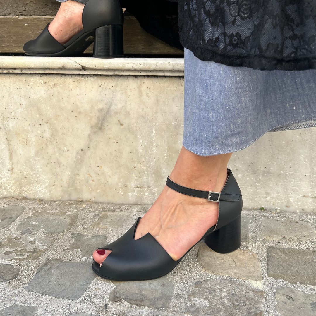 Aretha si ispira all'eleganza senza tempo di Franklin. Per l'estate calda è una certezza di stile e comodità: il design sobrio e rassicurante della parte anteriore è ravvivato dal tacco largo e svasato, mentre la tomaia in nappa e la fodera in vitello conciato al vegetale, super assorbente, trattiene il piede dallo scorrere in avanti. Il tacco alto 5cm ci aiuta a gestire il peso del nostro corpo accompagnandolo sulla pianta ampia e fasciante. Adatta a piedi piedi standard e voluminosi, ai piedi con alluce valgo (prendendo un numero in più rispetto a quello indicato nella tabella taglie). Non adatta ai piedi longilinei. Per ogni dubbio sul numero da prendere, non esitare a contattarci qui tramite il nostro form contatti, su IG o via whatsapp.