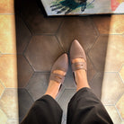 Il mocassino che somiglia ad una ballerina chic! Finalmente abbiamo la nostra slip on  pensata per tutti i piedi, capace di rispettare lo stile di ognuna ma, soprattutto, le dita e i talloni! Farrow prende ispirazione dallo stile androgino - bon ton di Mia Farrow in Rosemary's baby, con il taglio di capelli sognato da tutte noi, almeno una volta nella vita. La forma è caratterizzata da una punta poco invadente e con pianta accogliente. Il tacco di 2,8 cm è quello minimo per il giusto drop con la pianta. La scollatura è quella di una ballerina, con il dorso tenuto grazie ad una fascetta penny, con il classico taglio, reinterpretata a modo nostro. I piccoli inserti in elastico alla base della fascetta, permettono a tutti i piedi di entrare agilmente ma, allo stesso tempo, di essere tenuti sul punto più importante in camminata. La tomaia è in vitello e la fodera in vitello assorbente, perfetto per essere indossato con e senza calze. La soletta - in morbido lattice, rivestita in vitello assorbente -  è rimovibile: i piedi longilinei potranno così inserire, sotto di essa, le solette riempitive che diamo in omaggio o rimuoverla, per usare un plantare ortopedico non eccessivamente alto. Tutto questo garantisce il movimento dei talloni e delle dita con la tenuta sul dorso della scarpa più desiderata dalle slip on lovers!